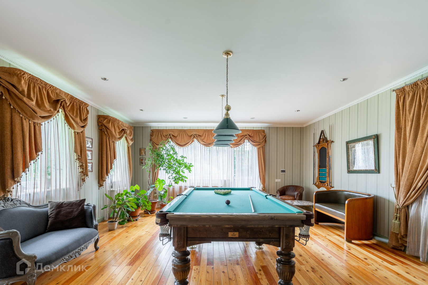 Бильярдная комната, кинозал с выдвижным экраном и проектором.