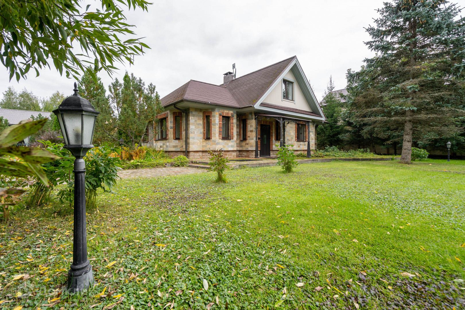 1) 2-х этажный коттедж, площадью 207 кв. м, из газо-пенобетона на монолитной плите, утеплен по-немецкой технологии и облицован натуральным камнем.