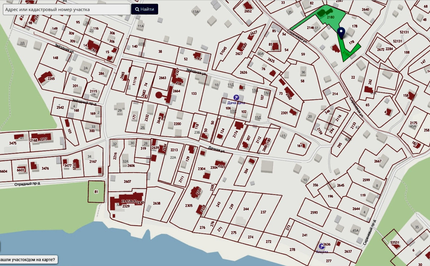 Кадастровые номера участков: 47:01:1703002:2189; 47:01:1703002:2180, домов: 47:01:1703002:2278; 47:01:1703002:2255. Координаты для навигатора: 60.267188, 29.753686.