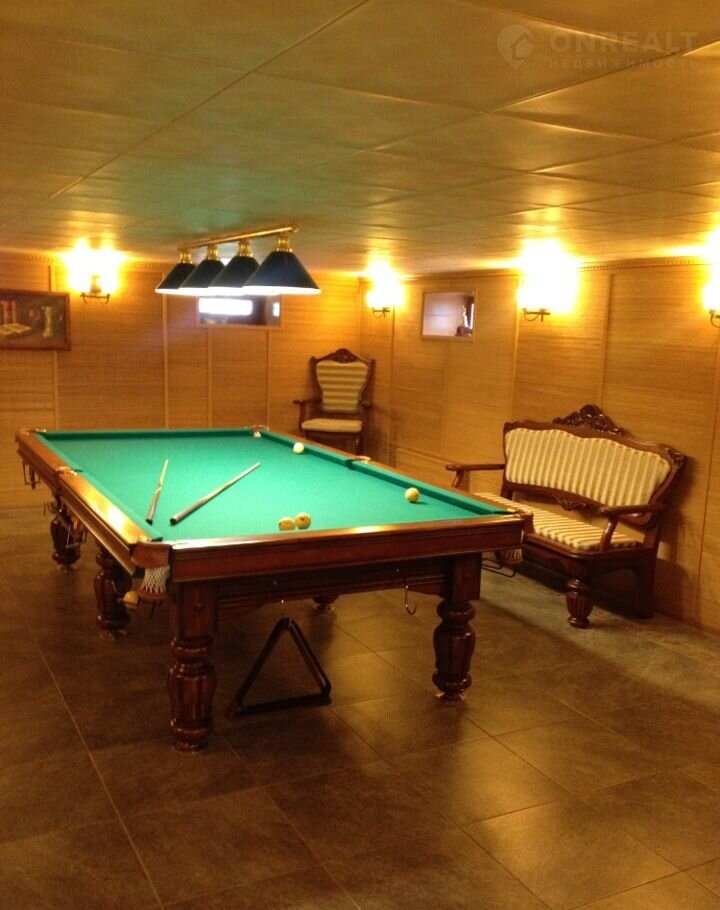 · На цокольном этаже: баня (2 сауны – финская и инфракрасная), комната отдыха, душевая. Бильярдная, мастерская, прачечная.