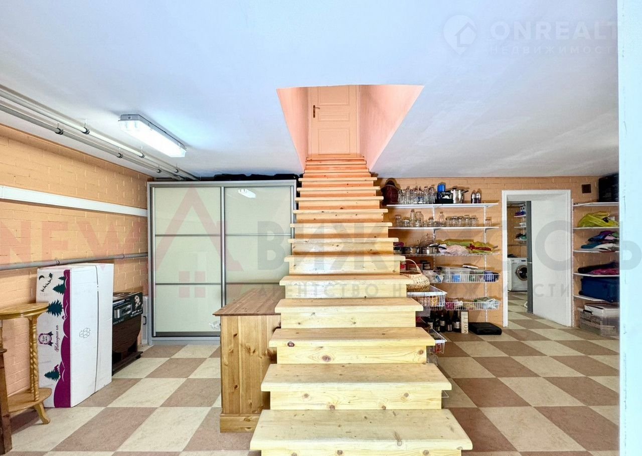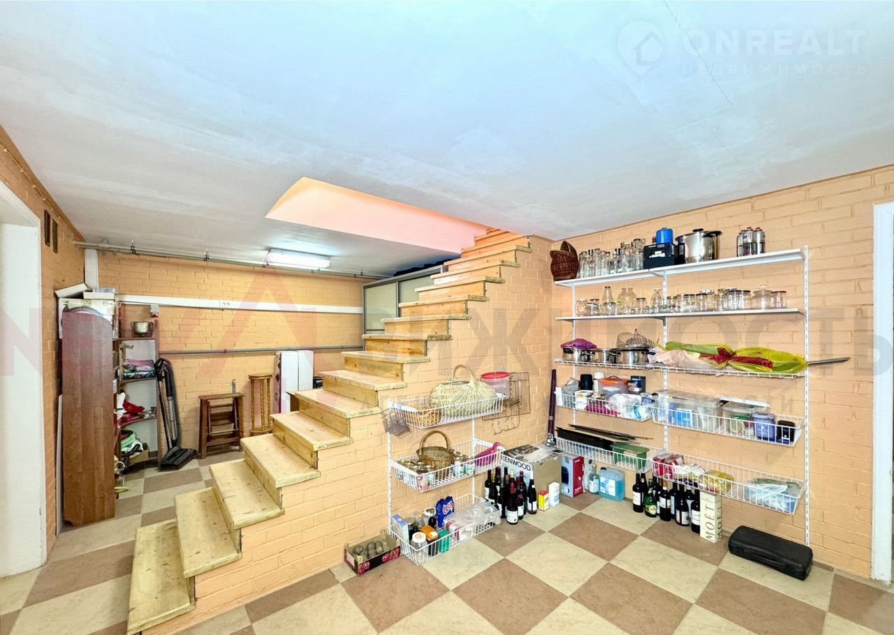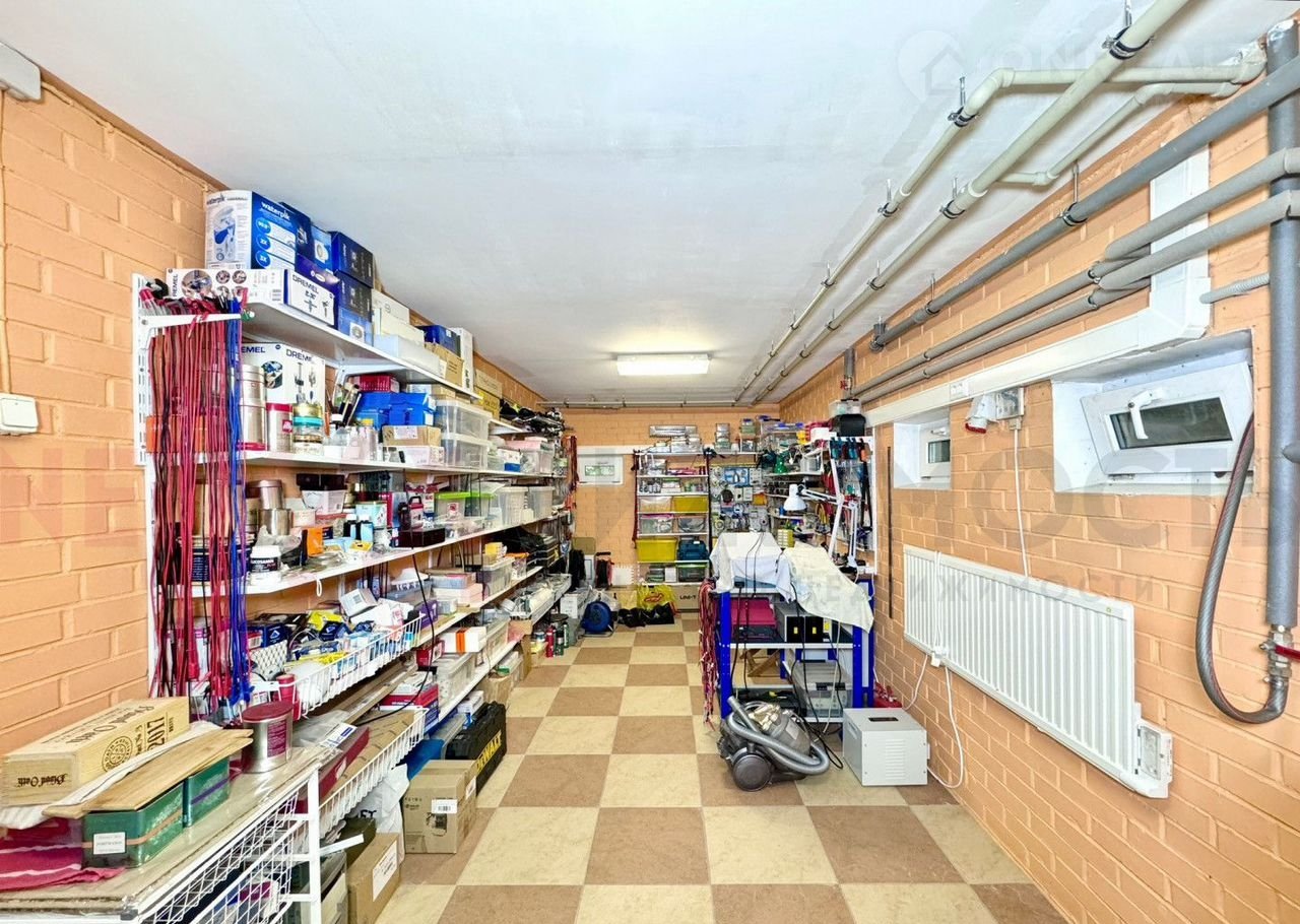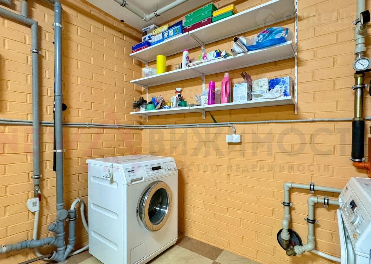 В доме имеется цокольный этаж, который можно использовать для хранения вещей. Одно из помещений отведено под мастерскую. На цокольном этаже размещена зона для стирки: стиральная и сушильная машины Мiеlе и большая морозильная камера. По метражу цоколь повторяет метраж первого этажа.
