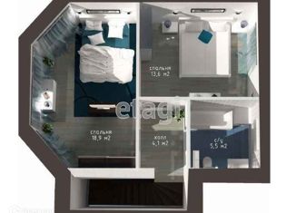 Общая площадь: 60.4 м2