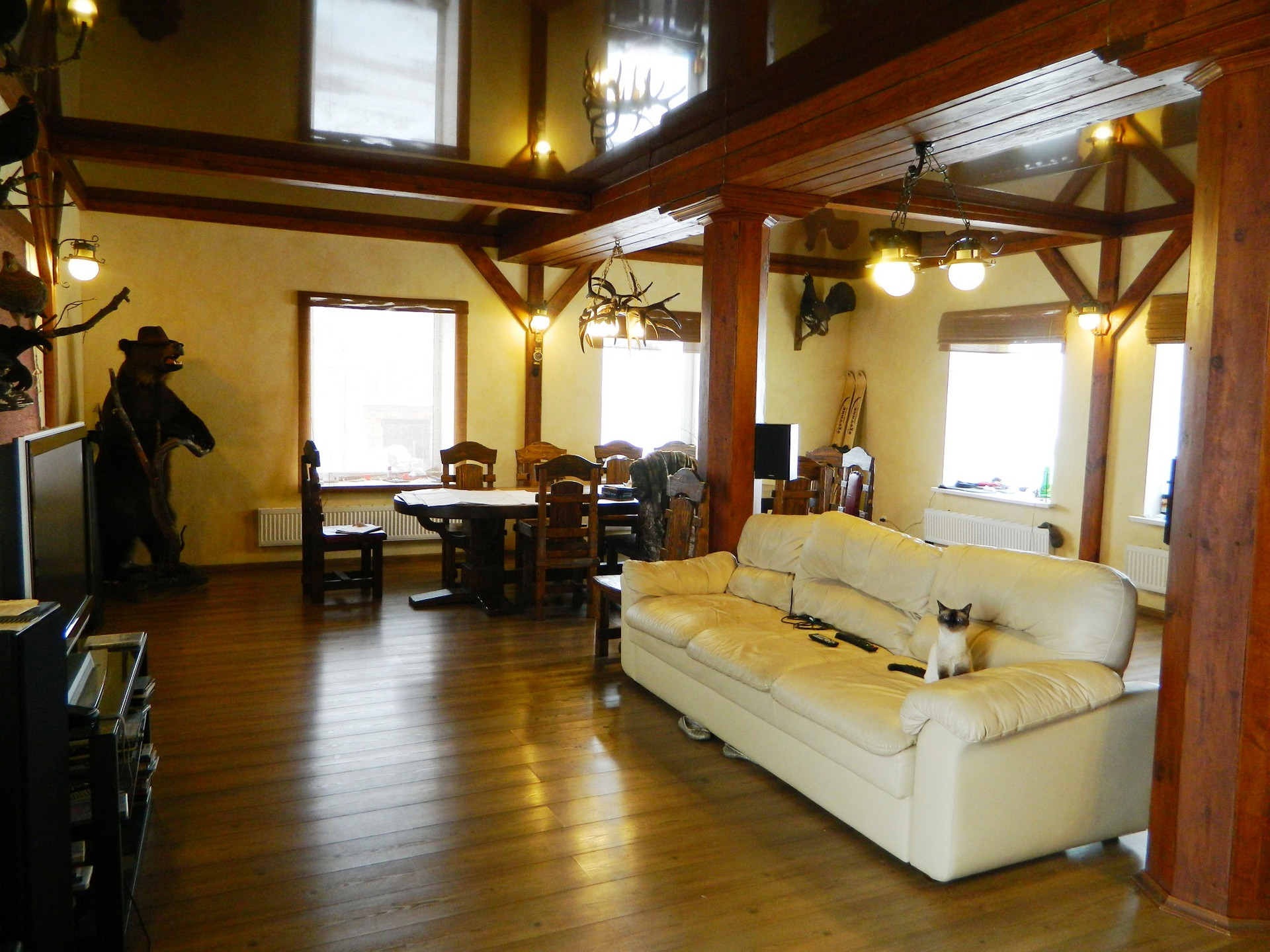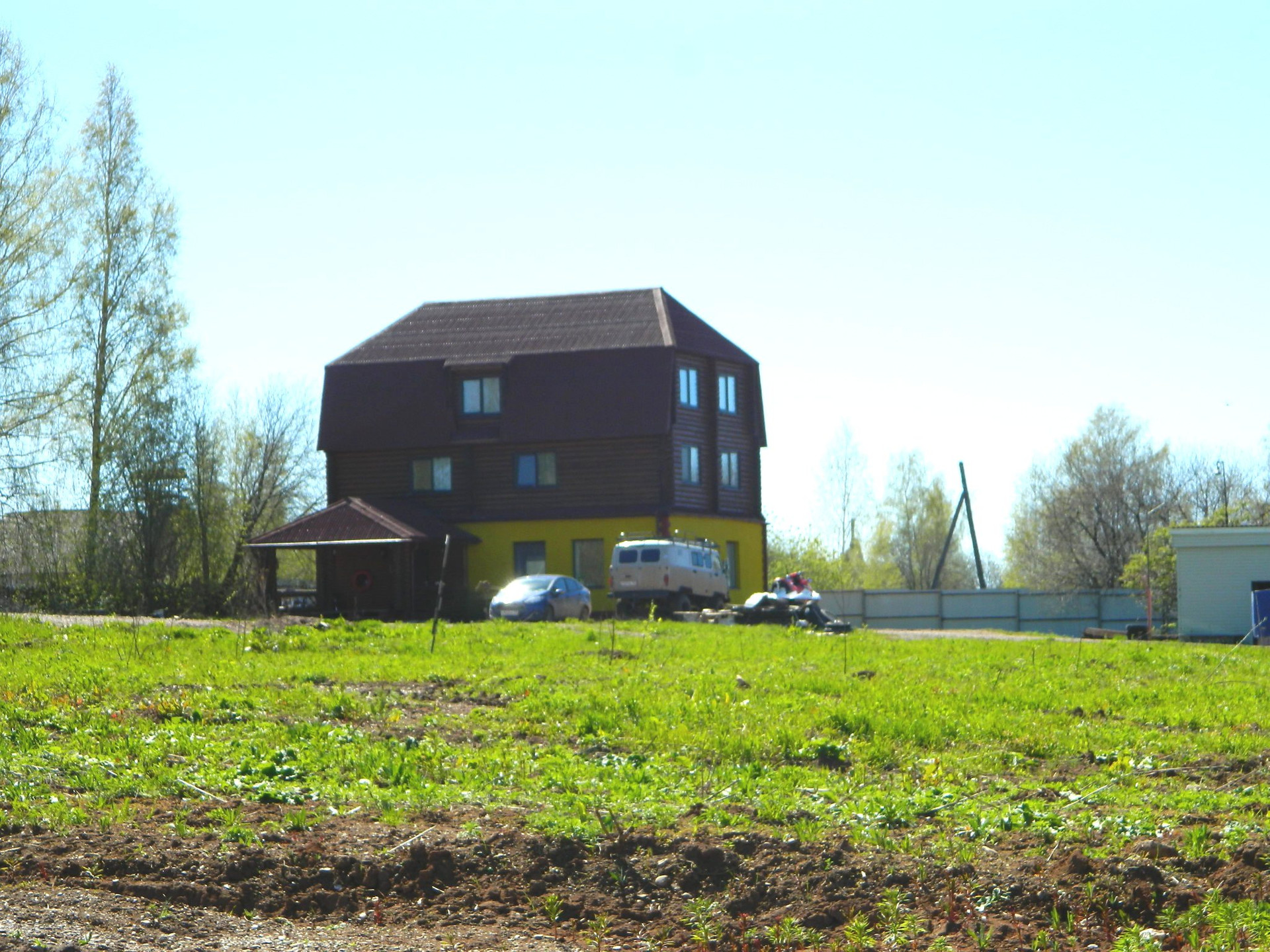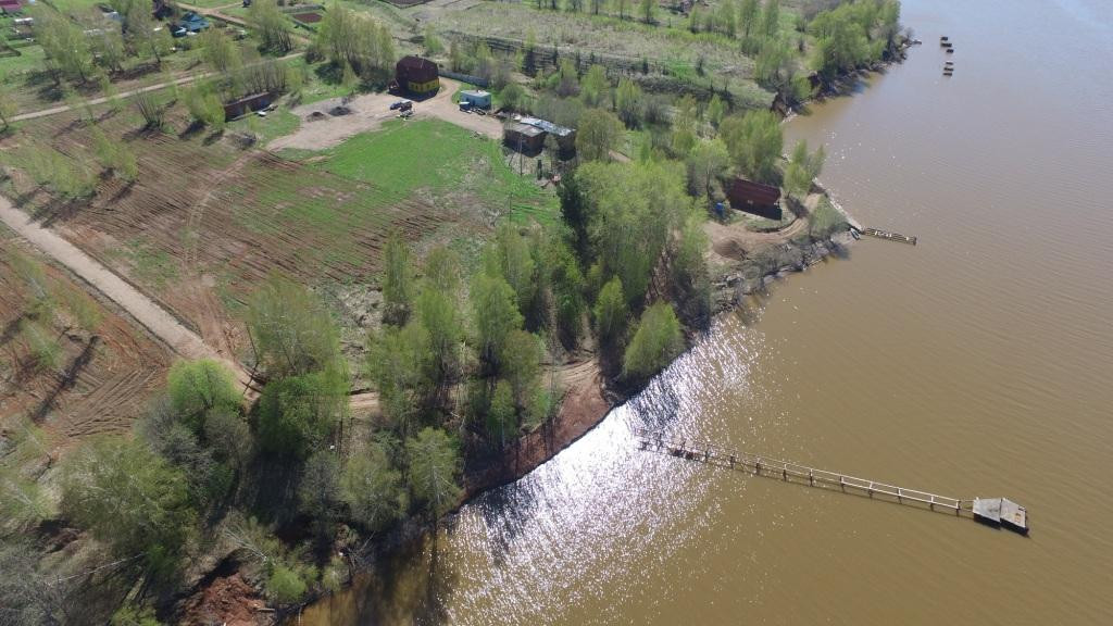 Постройки: 3-эт. дом площадью 230 кв м, баня из оцилиндрованного бревна, собственный причал, хоз. постройки.