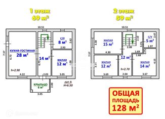 Общая площадь: 128.2 м2