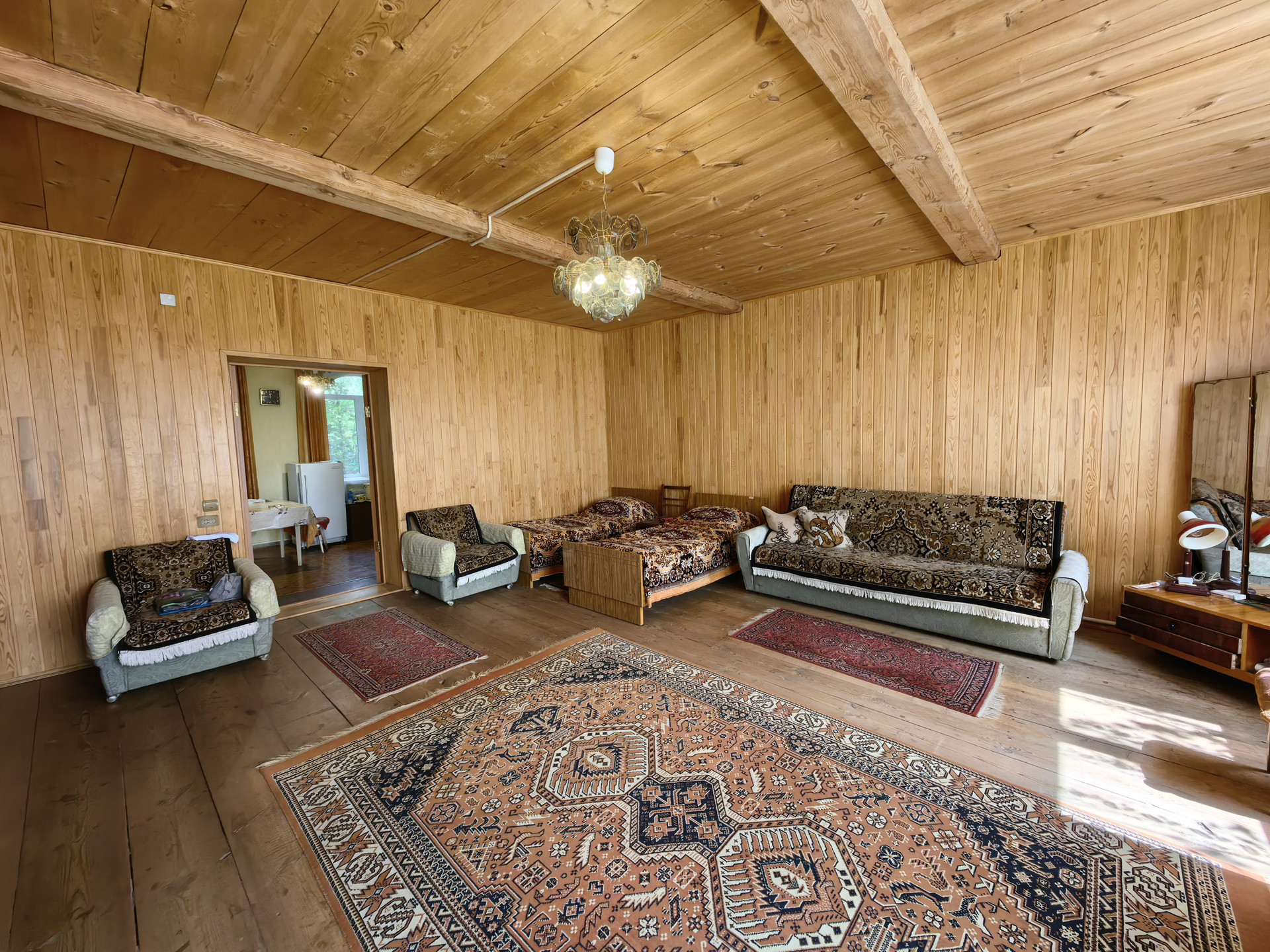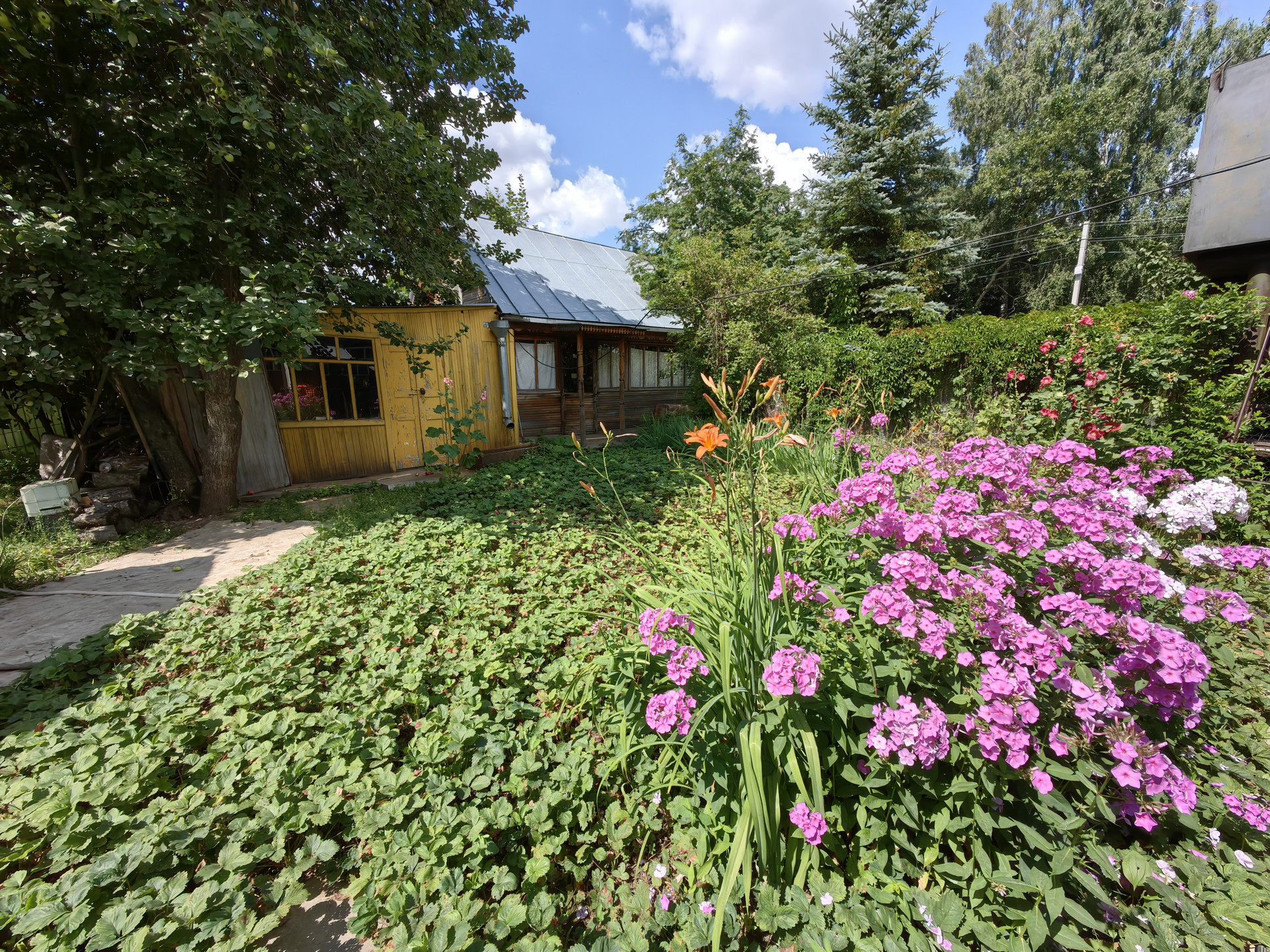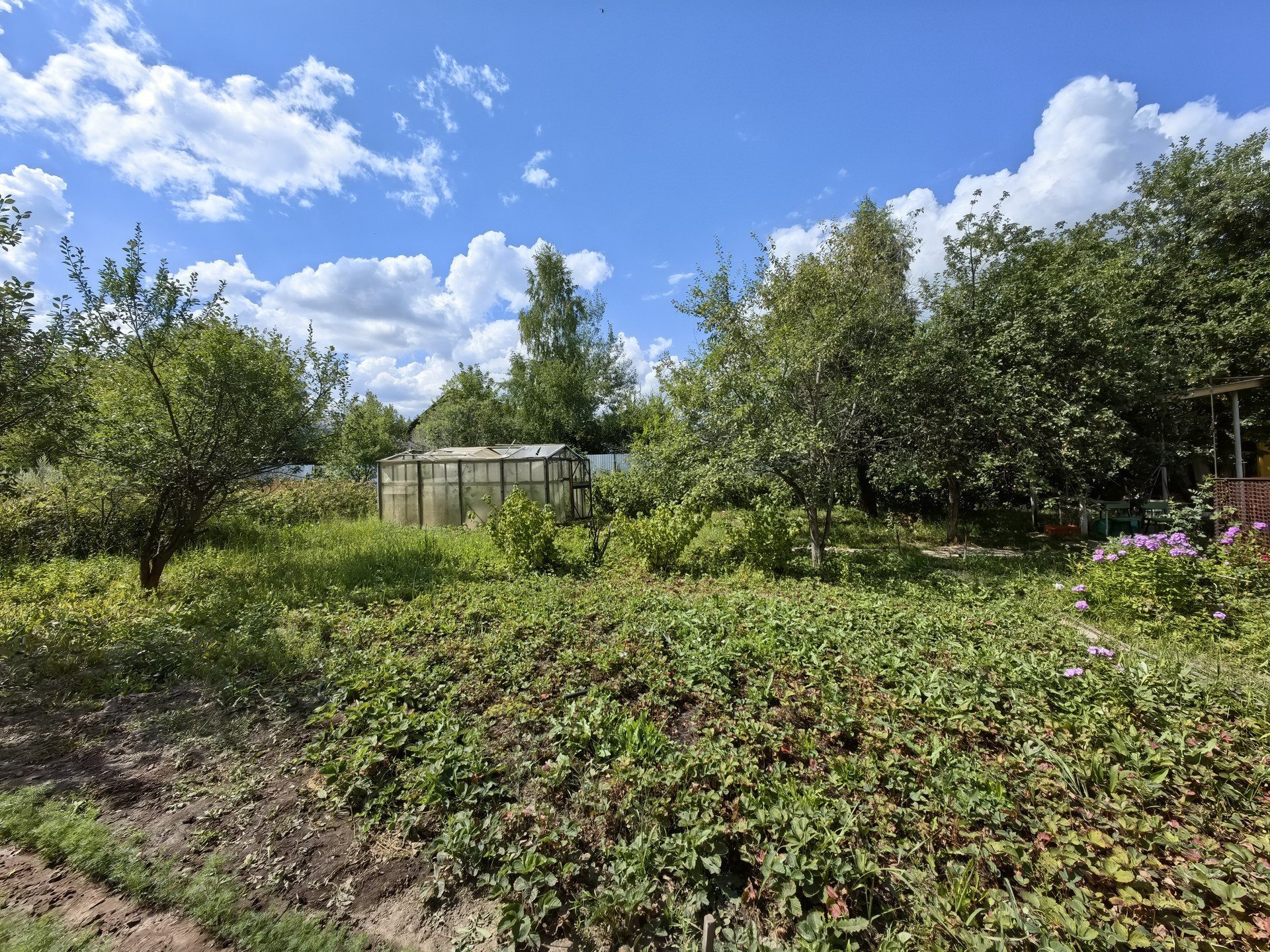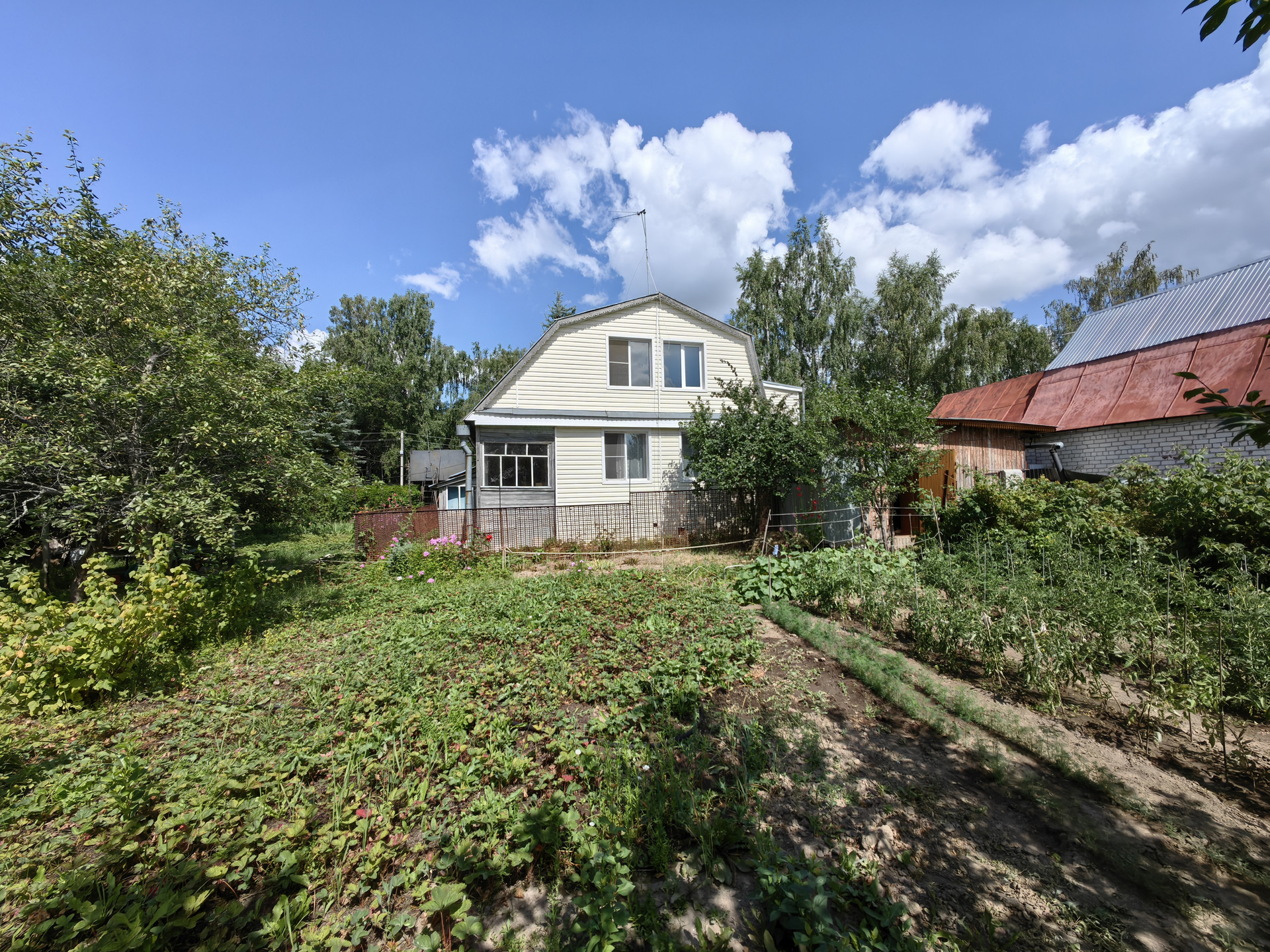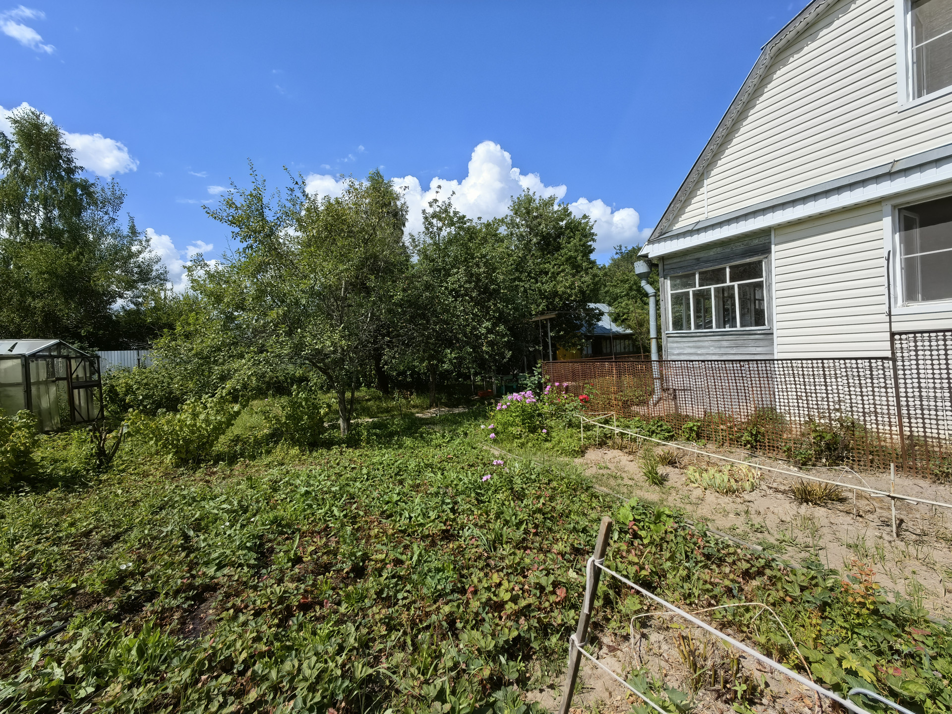 Участок, ровной формы, с плодовыми деревьями и кустарниками. На участке есть еще один дом из сруба, баня на дровах.