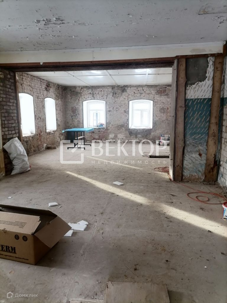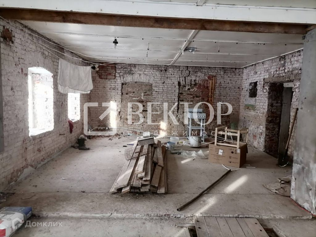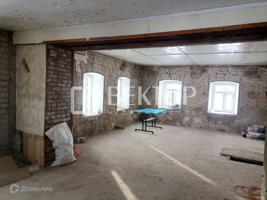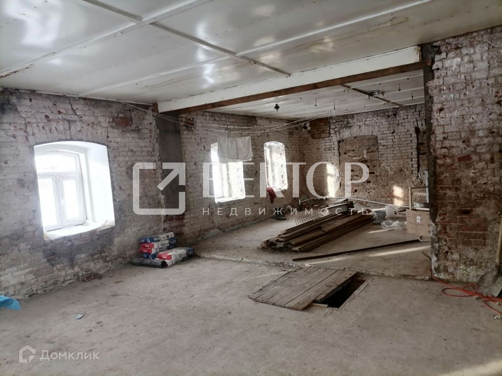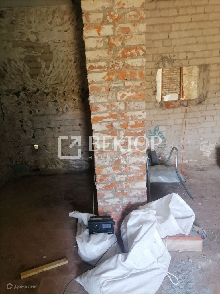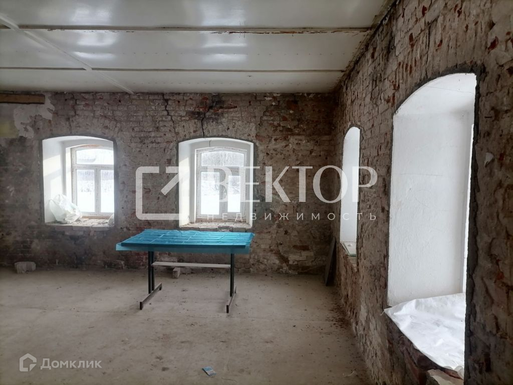Два отдельных входа в здание. Произведен полный демонтаж стен внутри (толщина стен 70 см.), во всем здании установлены пластиковые окна, полы залиты бетоном, выровнены, перекрытия железобетонные плиты. Есть подвал.