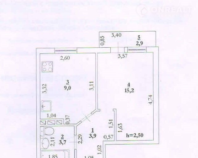 Жилая площадь 15.2 м2