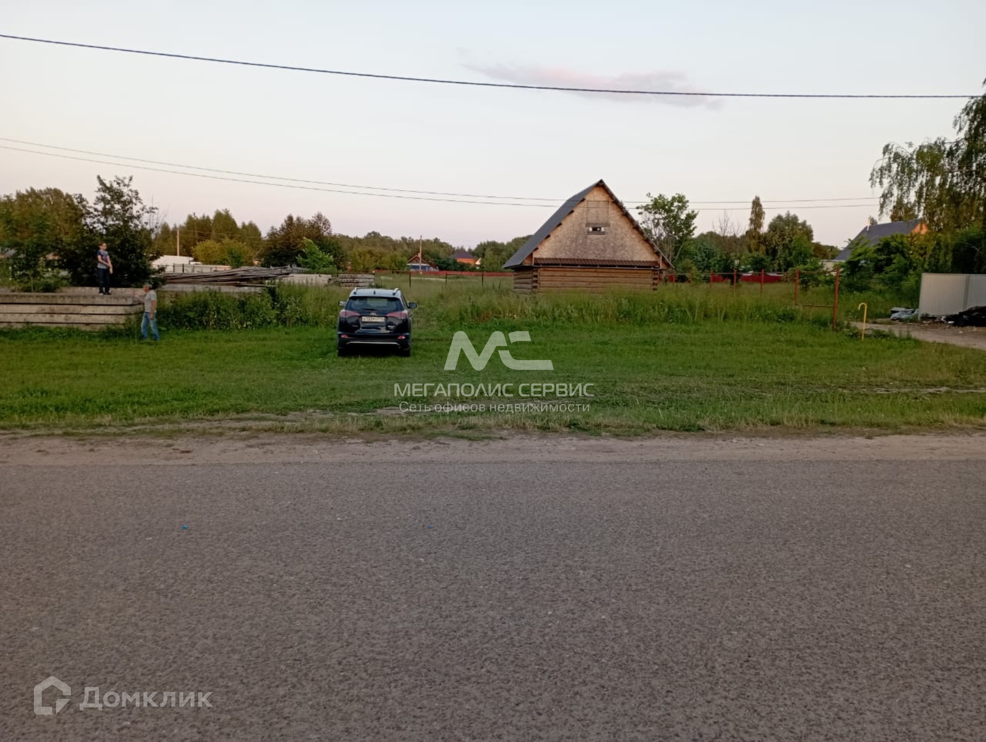 Участок ровный, огорожен забором. На участке имеется сруб под баню.