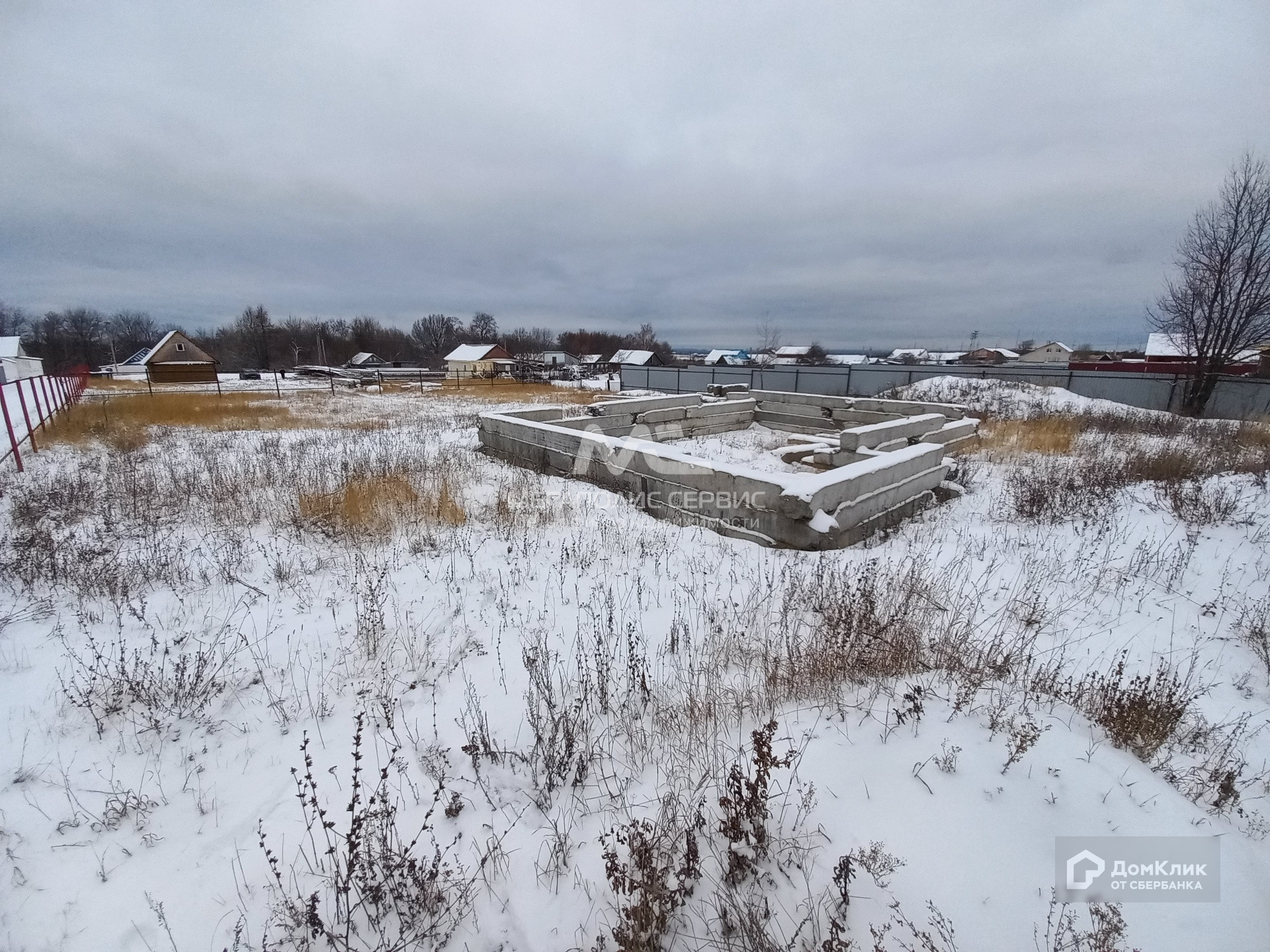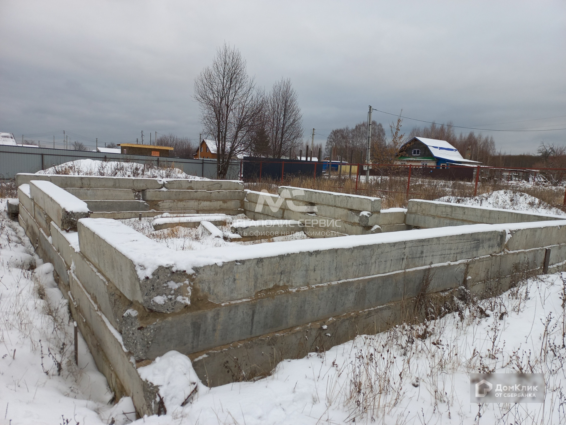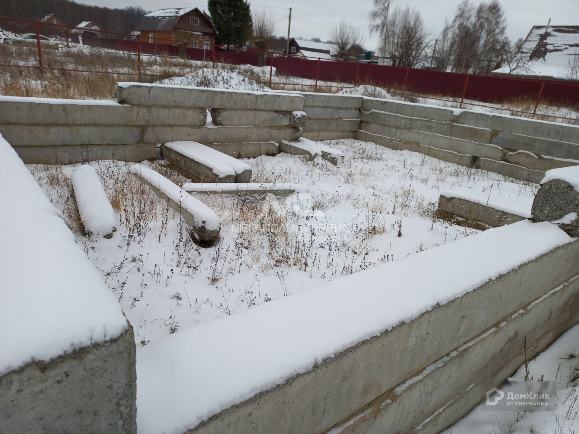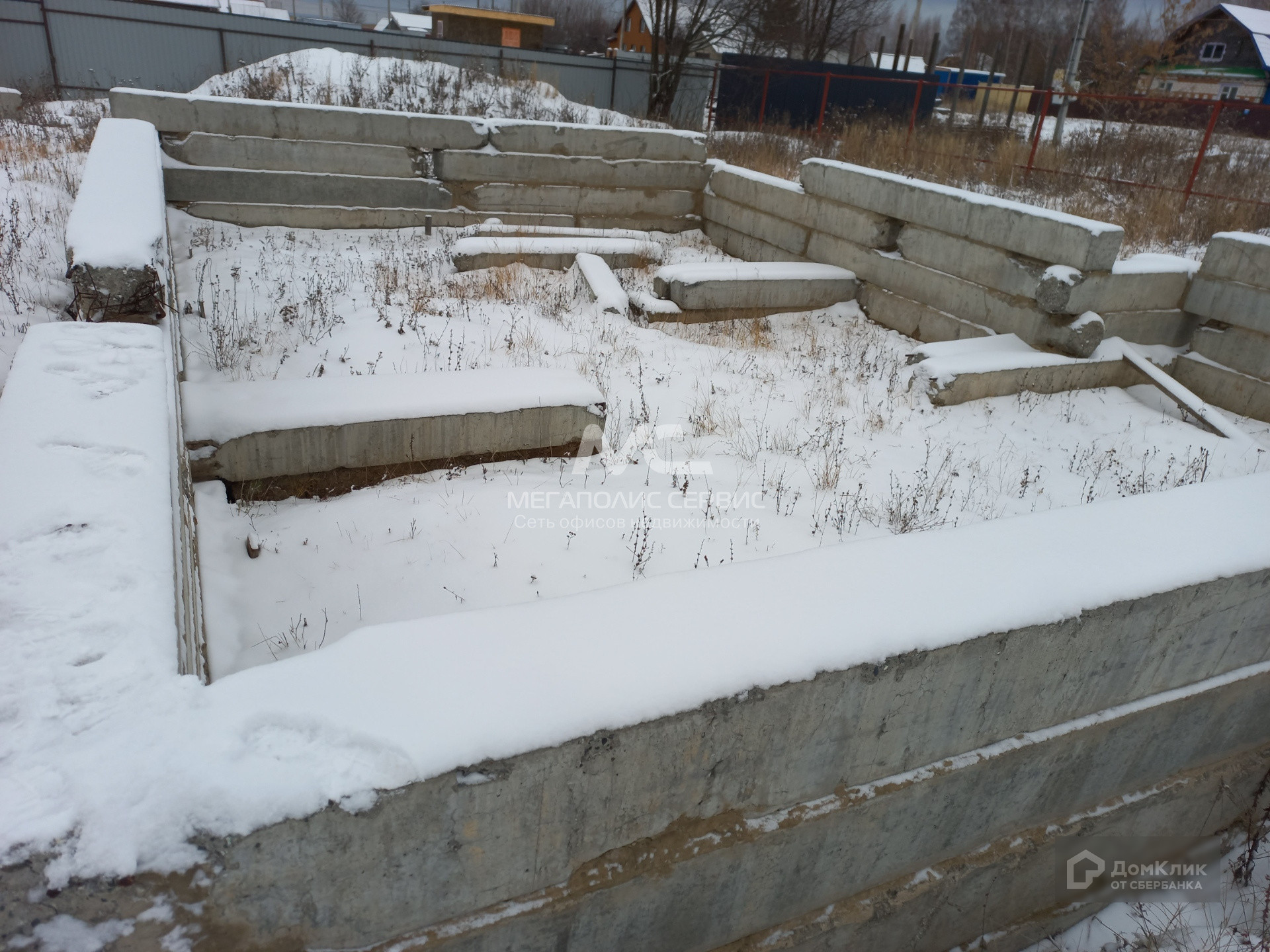 Участок ровный, огорожен забором. На участке имеется фундамент.
