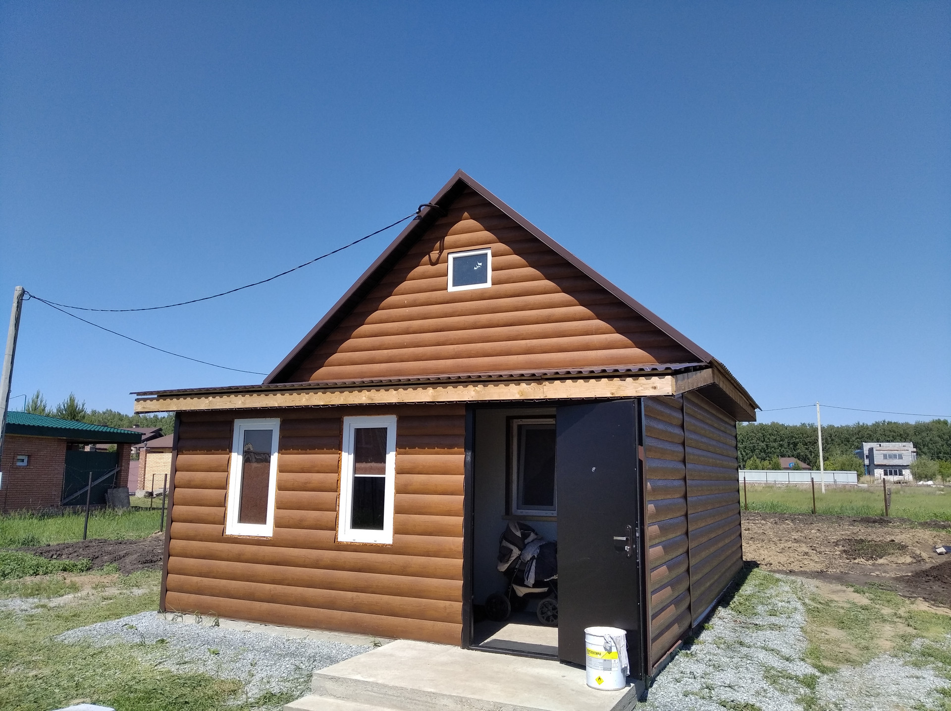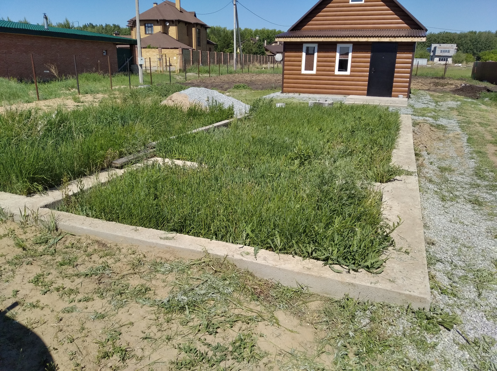 Рядом с домом фундамент под строительство, с хорошим запасом прочности. Можно строить в два этажа. Размер 10*8.