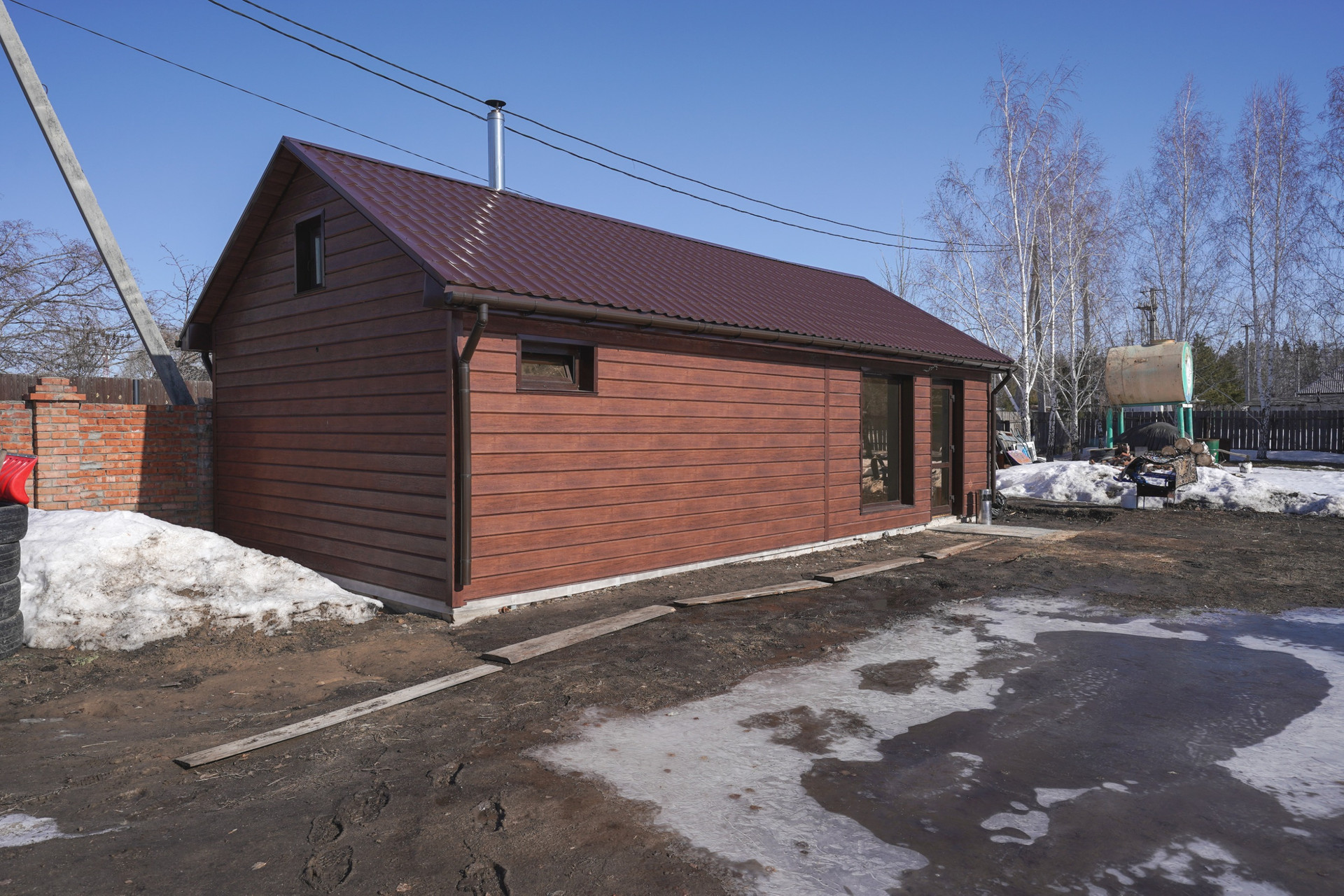 В пространство дома входит гараж площадью 32 кв.м. с отдельным входом. На территории земельного участка располагается современный банных комплекс с зоной отдыха.