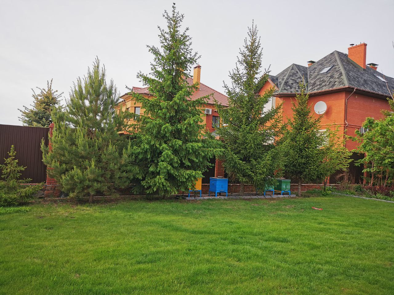Два гаража ( 30 кв.м. каждый),две теплицы. Установлена система видеонаблюдения и контроля по периметру территории.