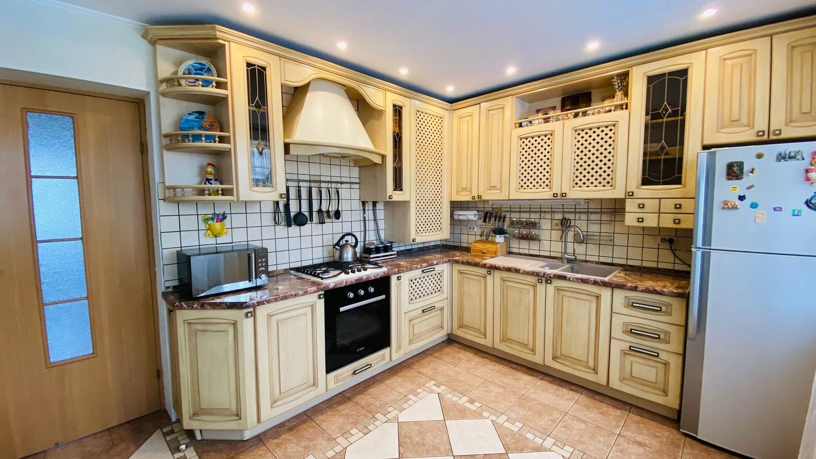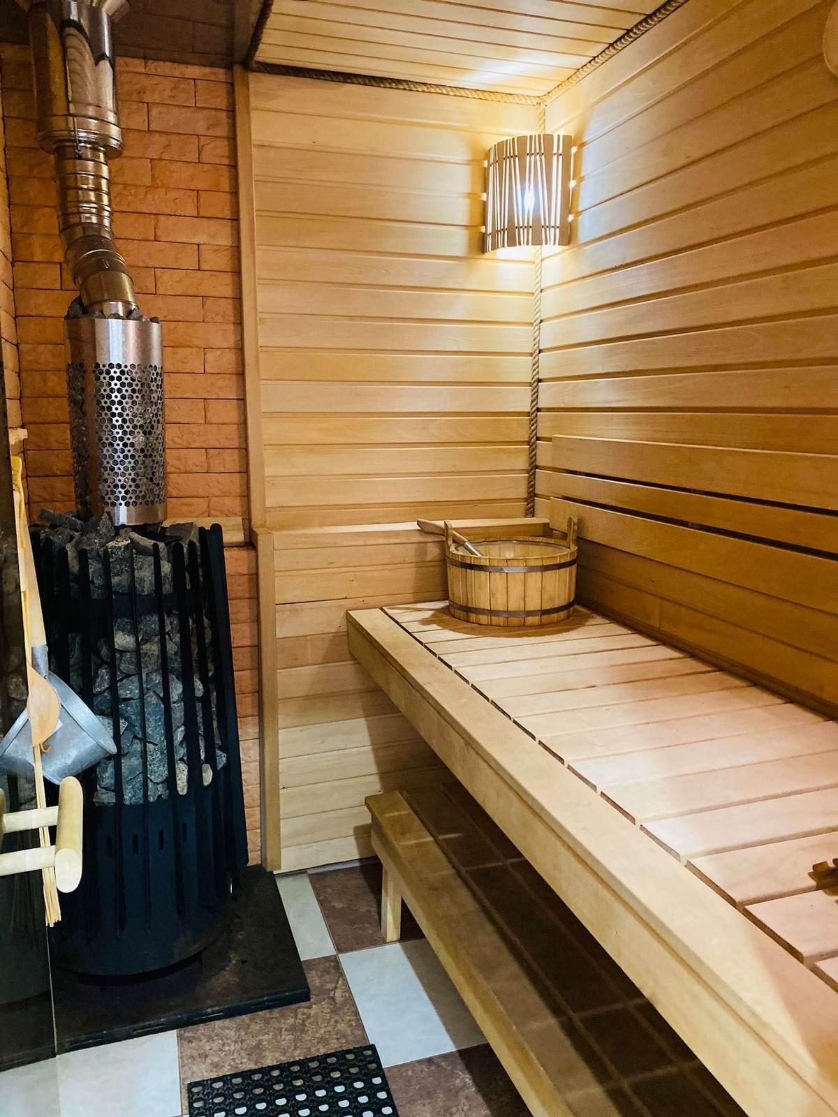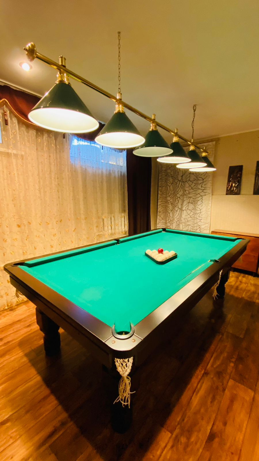 В доме: большая кухня, три спальные комнаты, гостиная, 2 санузла, гараж с ямой осмотра, также в подвале есть три помещения (бильярдная, спортзал и бытовая комната).