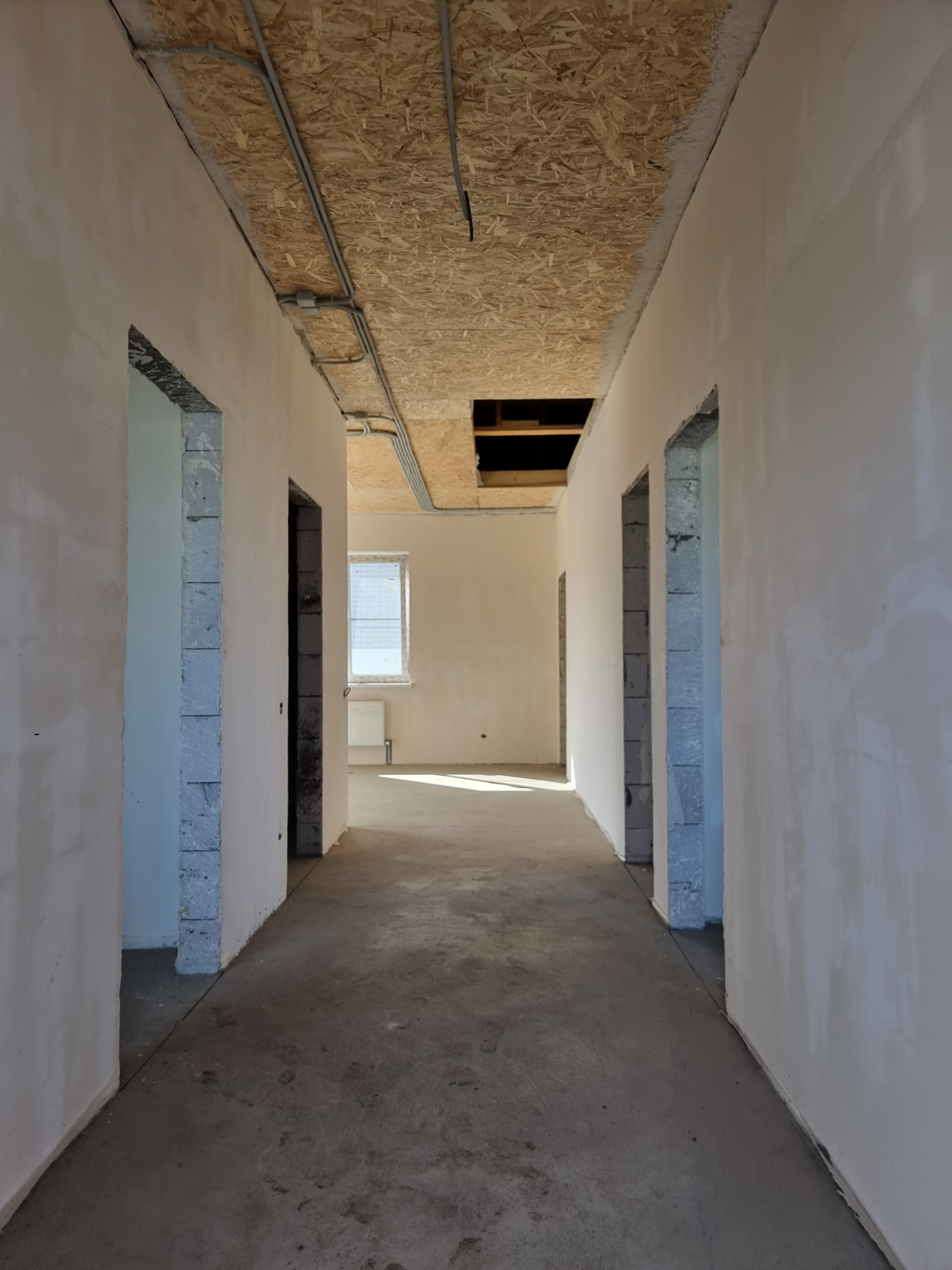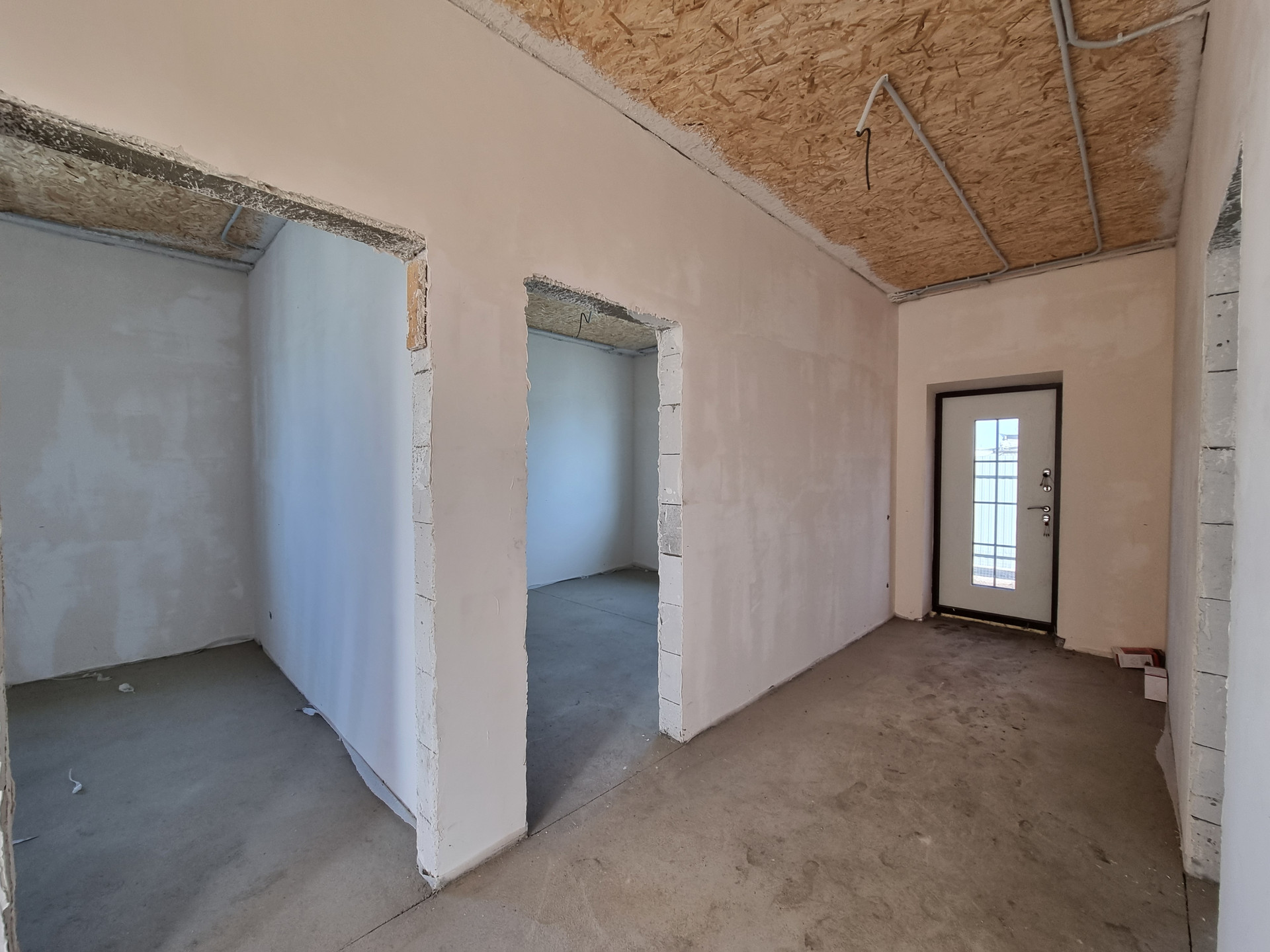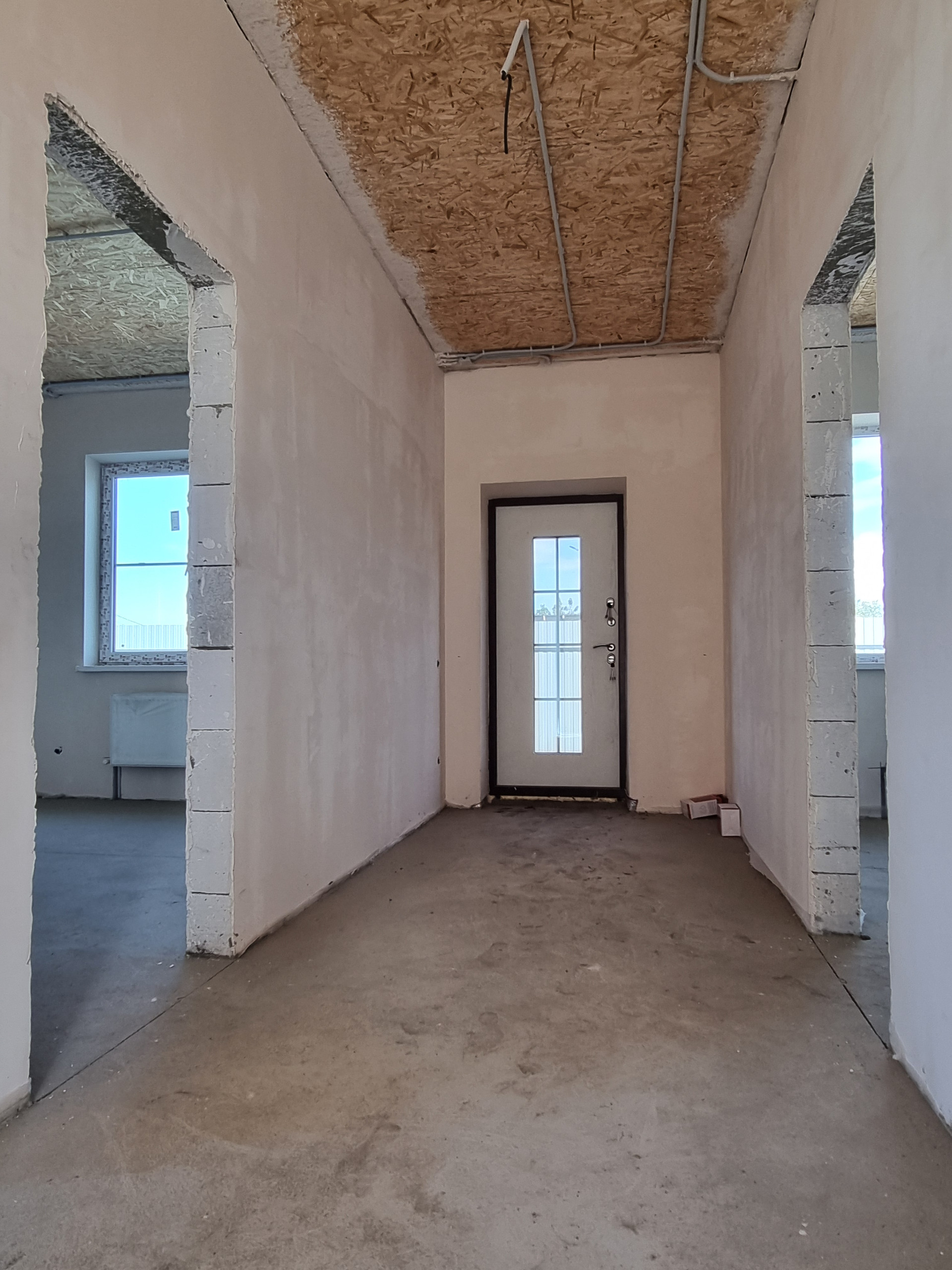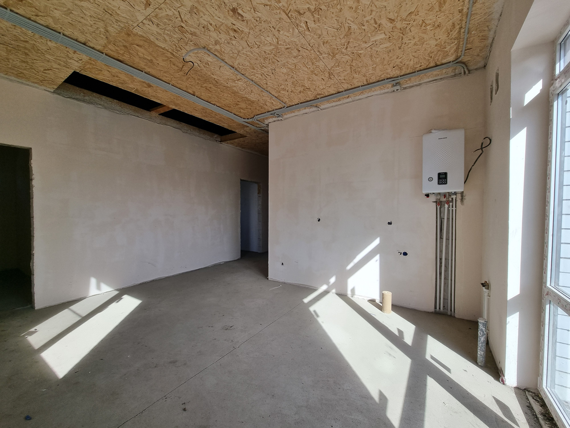 В доме выполнена качественная предчистовая отделка, полусухая стяжка пола. Разводка электрики, сантехники, установлен тёплый пол, радиаторы отопления, двухконтурный котёл.
