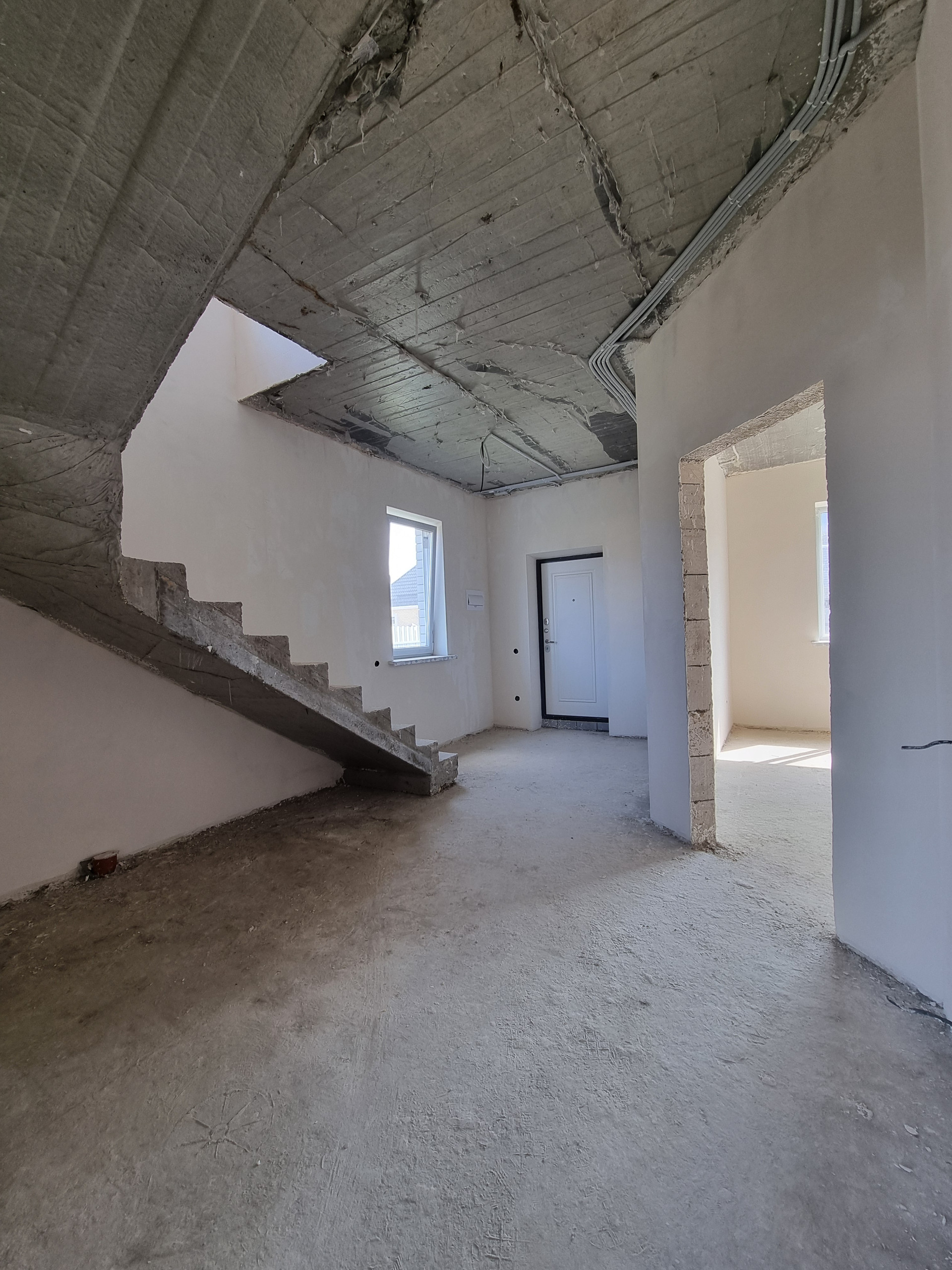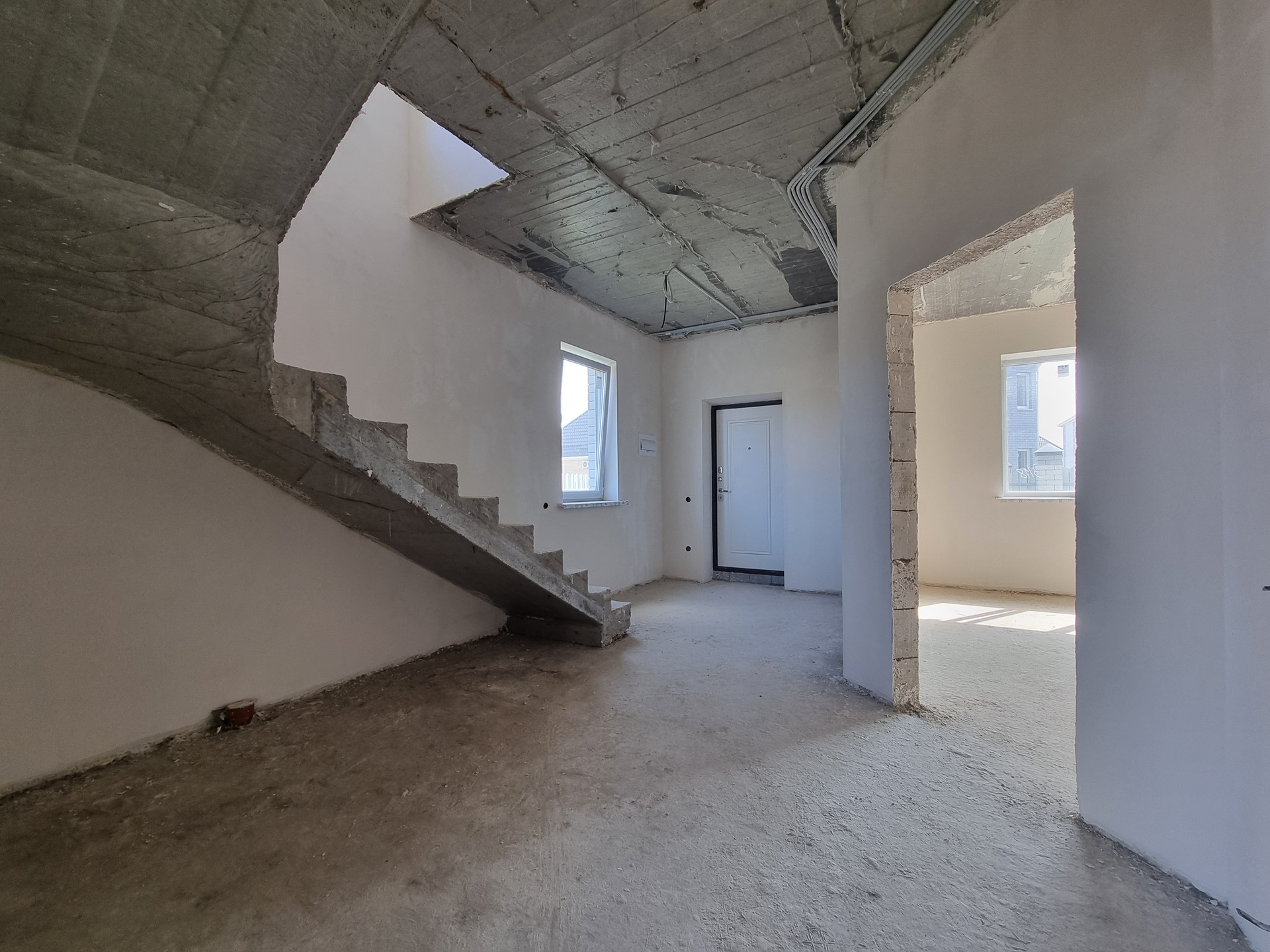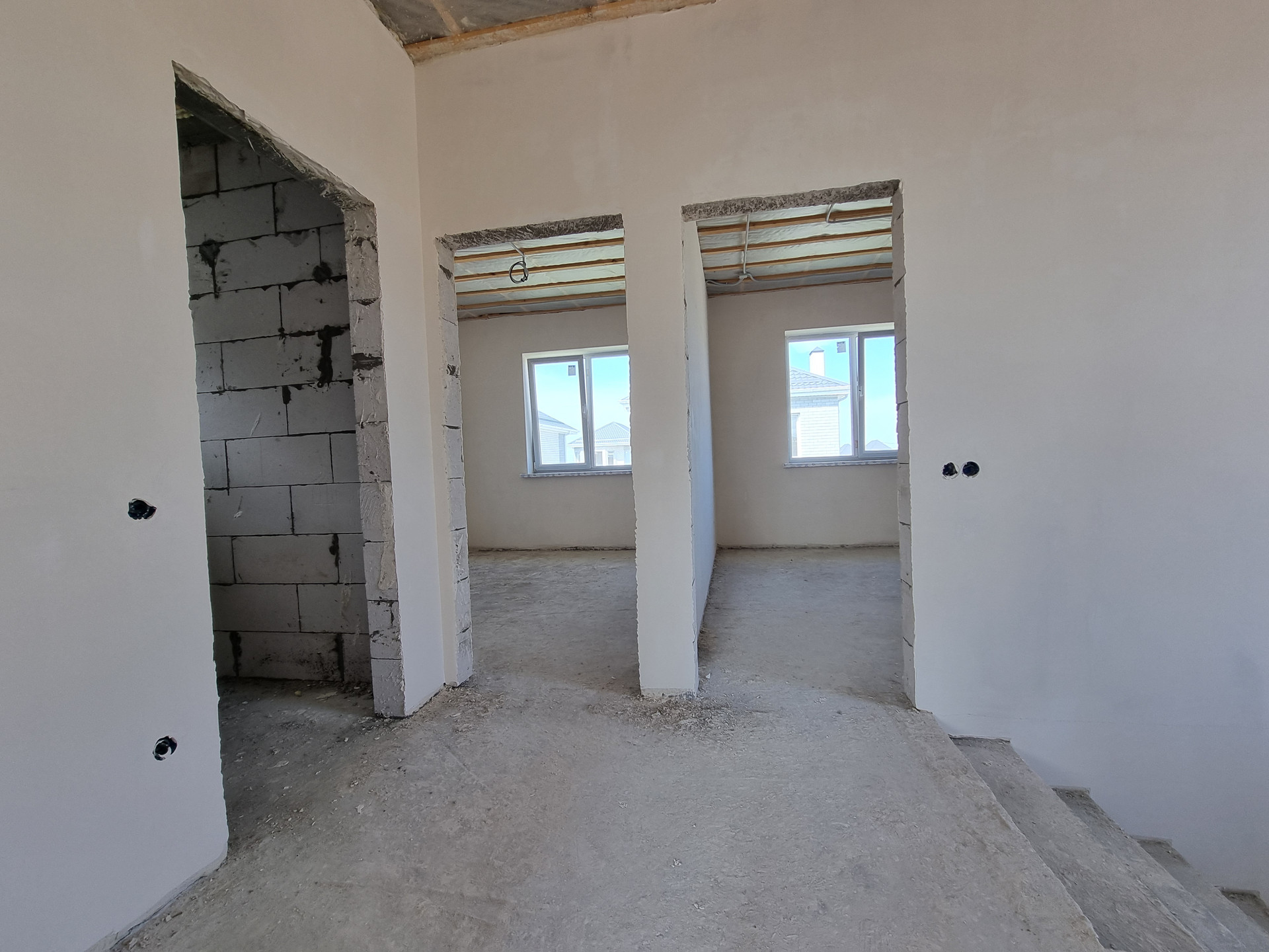 В доме выполнена качественная предчистовая отделка, полусухая стяжка пола. Разводка электрики, сантехники, установлен тёплый пол, радиаторы отопления, двухконтурный котёл.