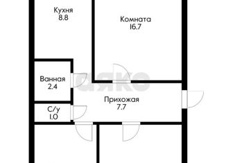 Общая площадь: 33.5 м2