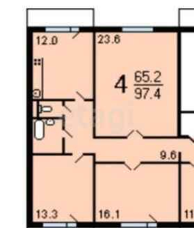 Общая площадь 63 м2
