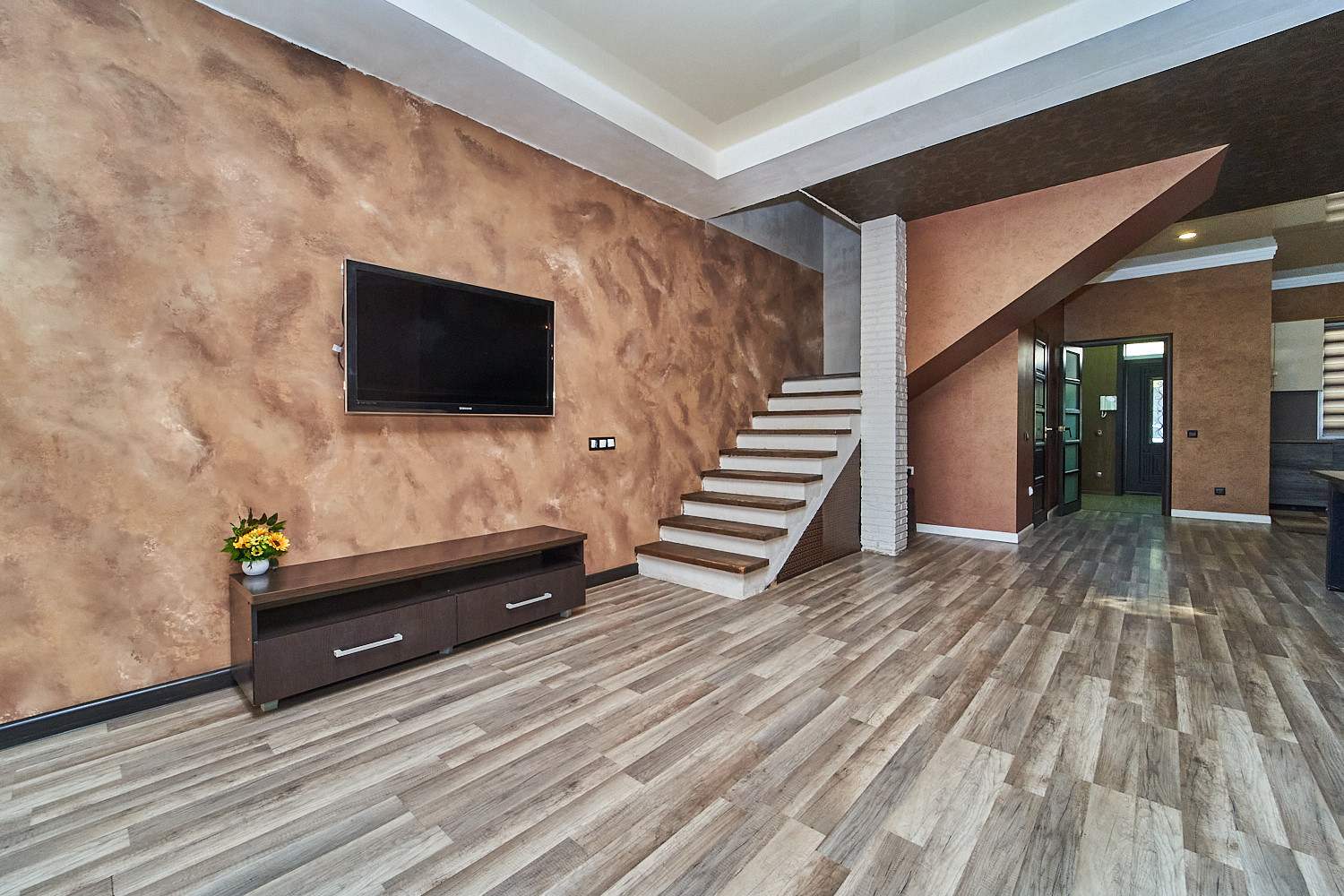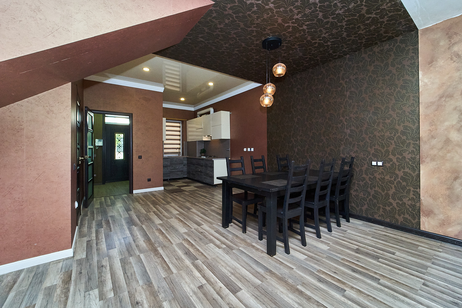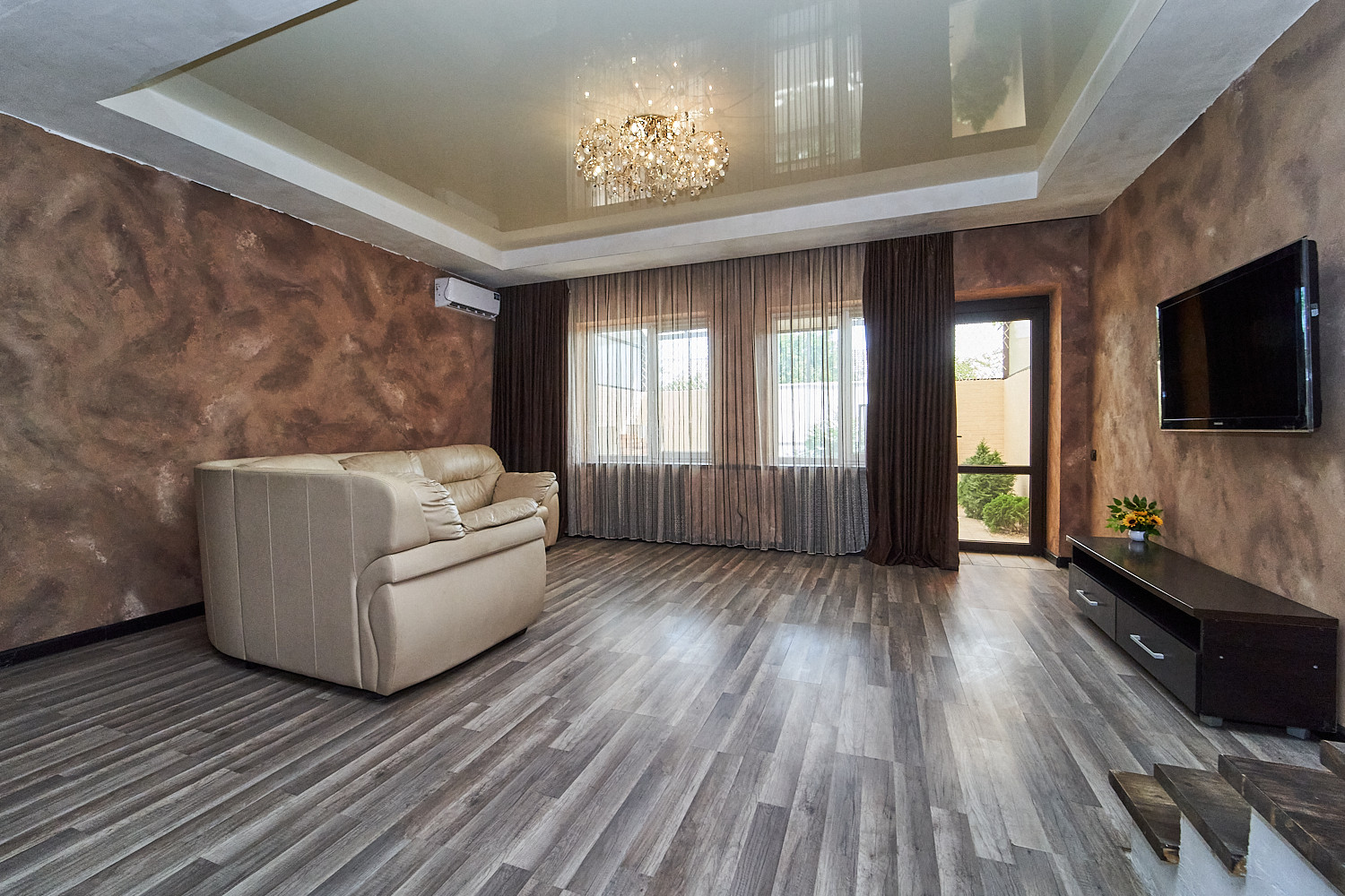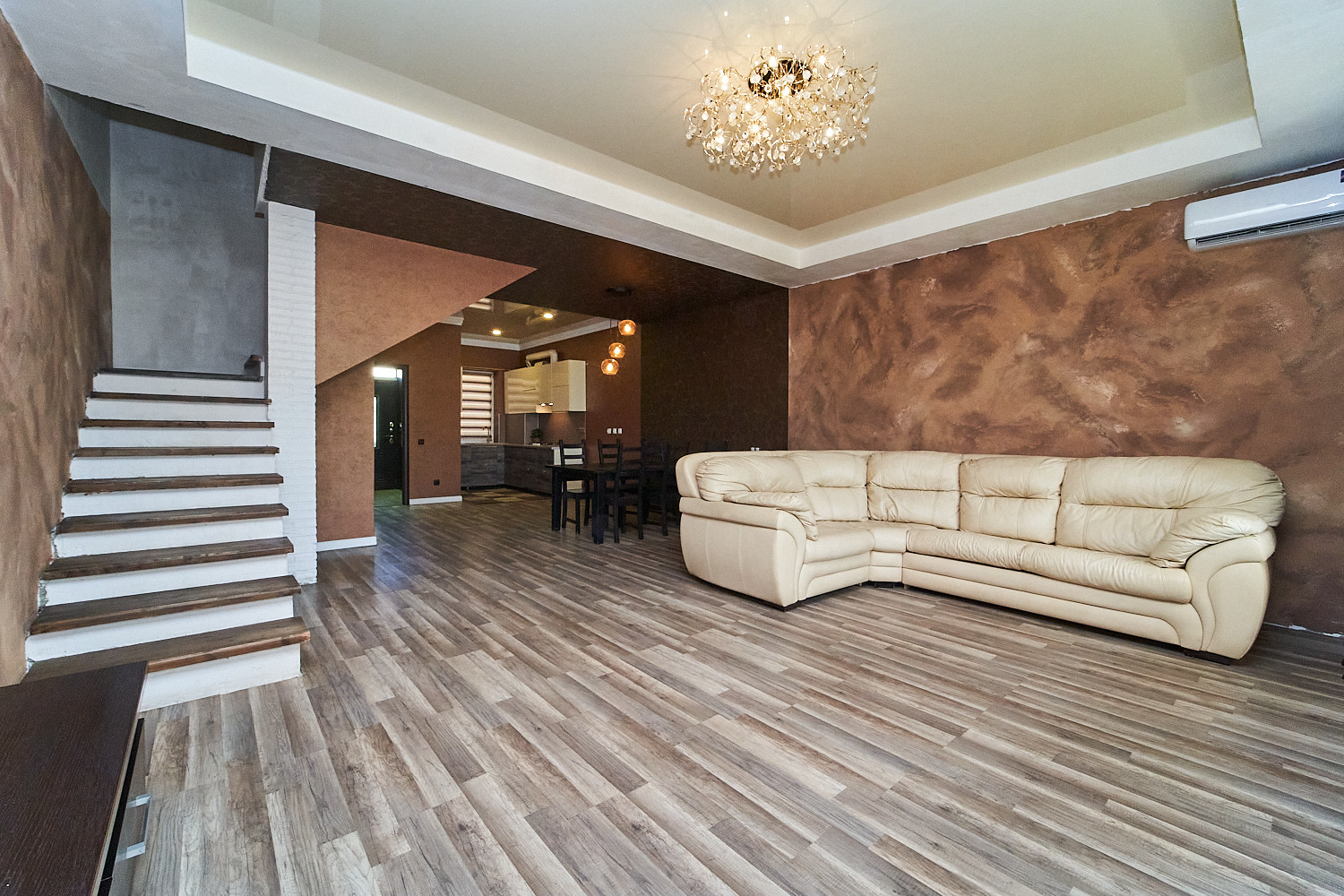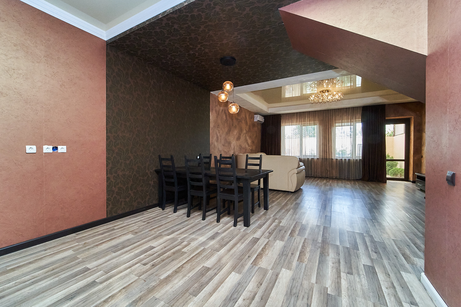 В доме имеется: большая гостиная, кухня, большая спальня, 2 детских комнаты, прихожая и гардеробная.