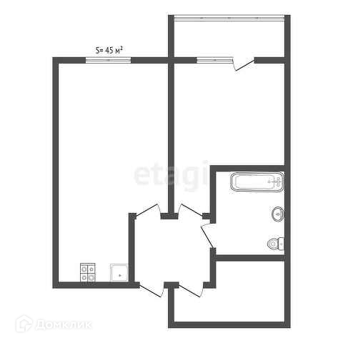 Общая площадь 40.7 м2