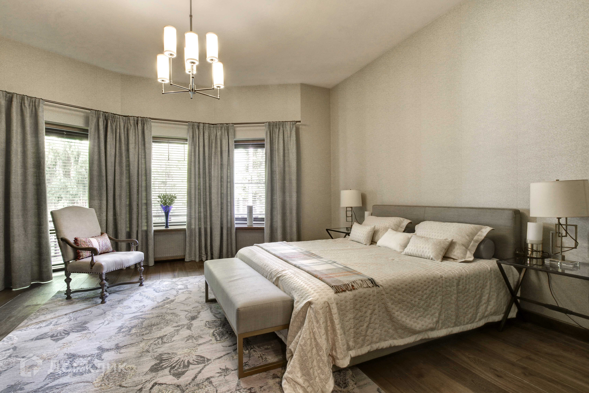 Второй этаж: три спальни с балконами , санузлами и гардеробными, темная комната.
