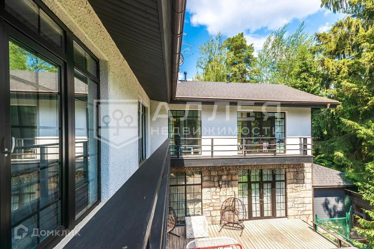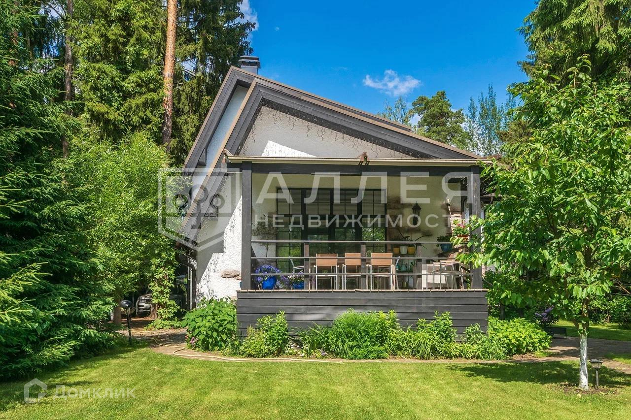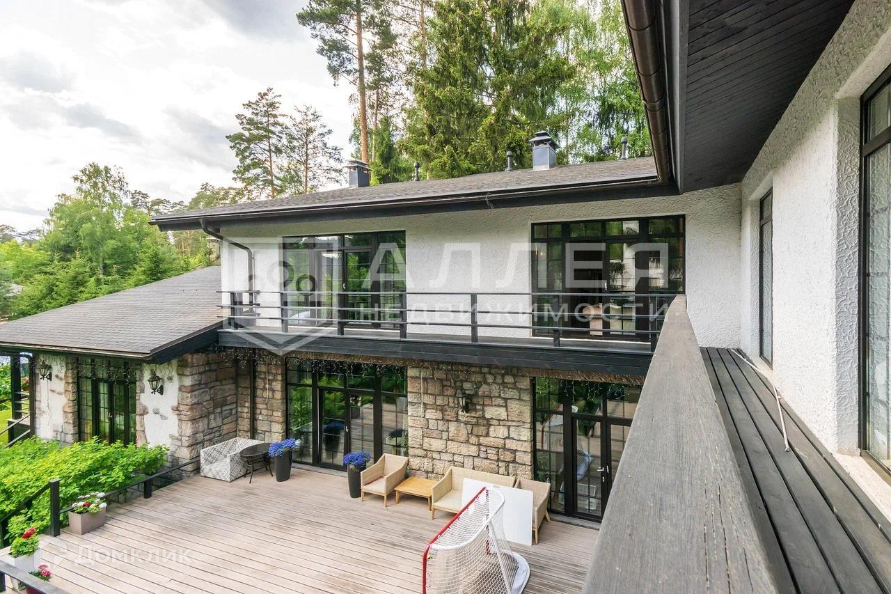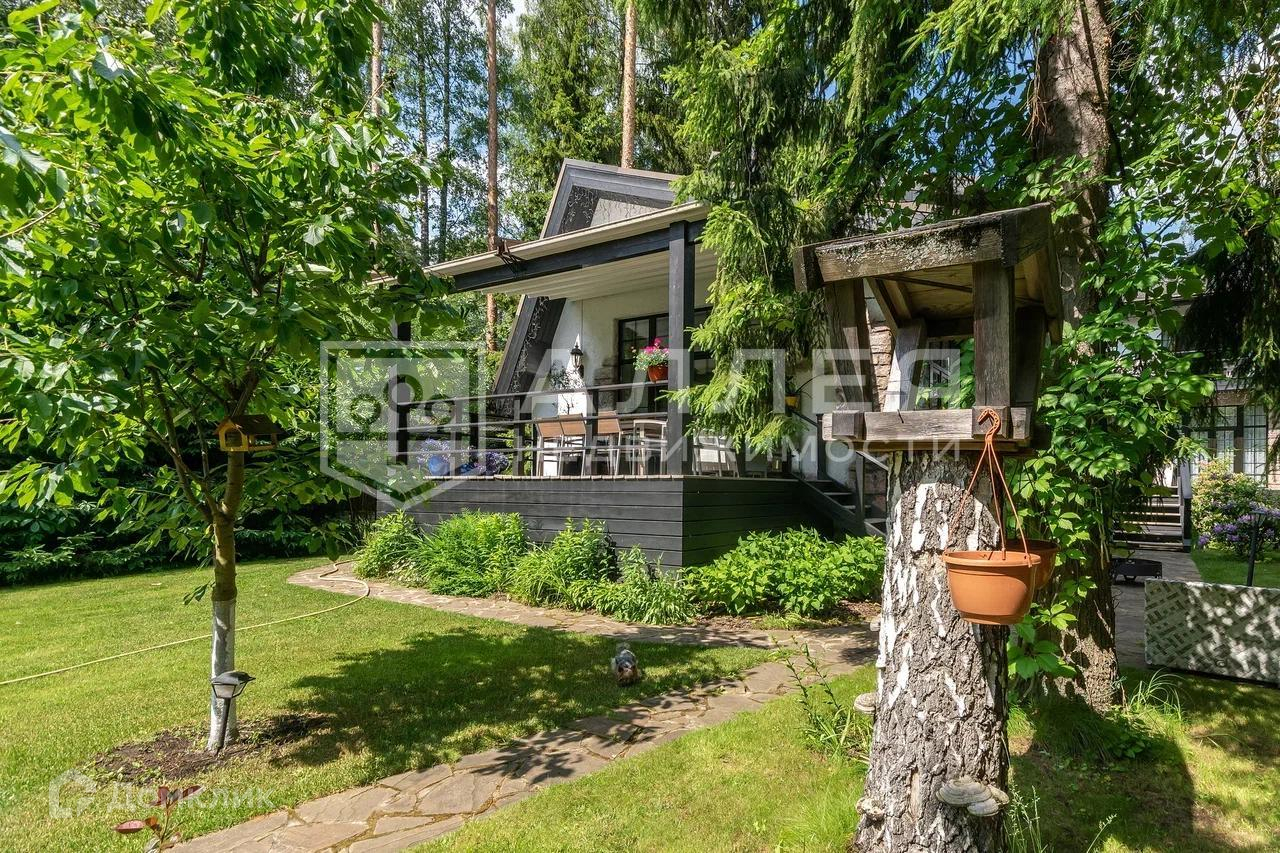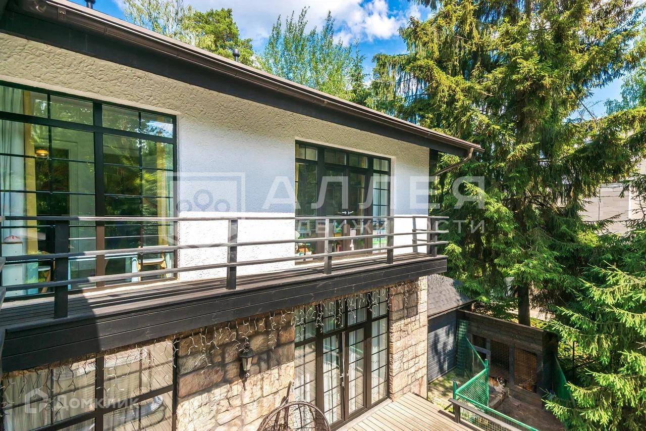 Дом: Дом под ключ  с мебелью,в стиле шале, с панорамными окнами.  Из окон открывается живописный вид на лесной участок. В зоне гостиной на первом этаже обустроен выход на просторную летнюю террасу. При строительстве использовались качественные и дорогие материалы ( лиственница, пробка и прочее). Интерьер дома выполнен в светлых теплых тонах. В доме имеется дровяной камин.