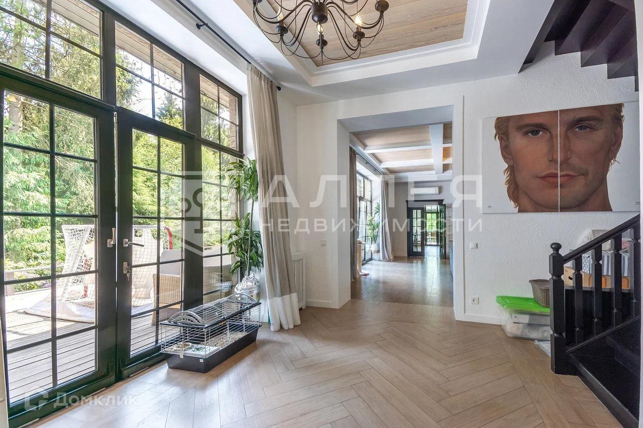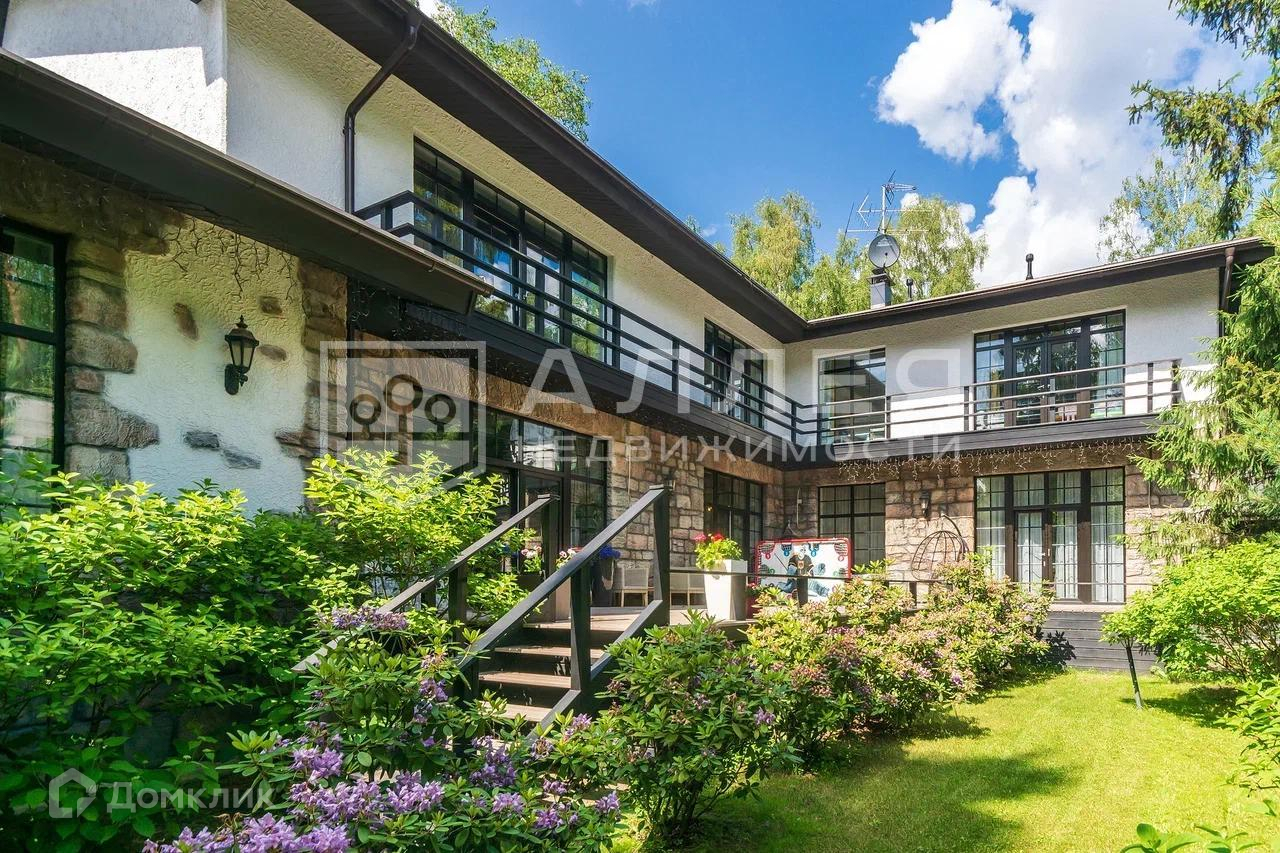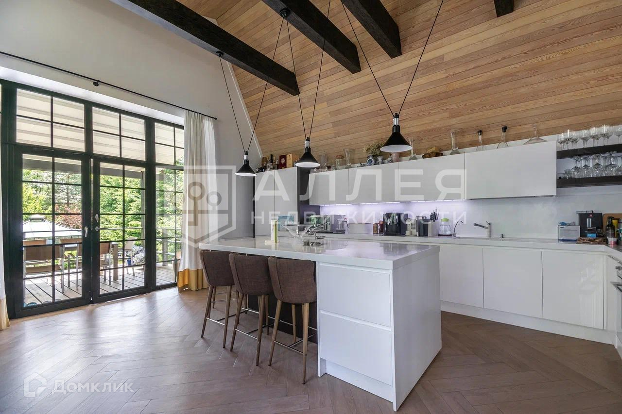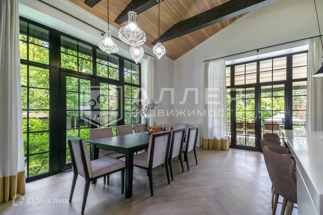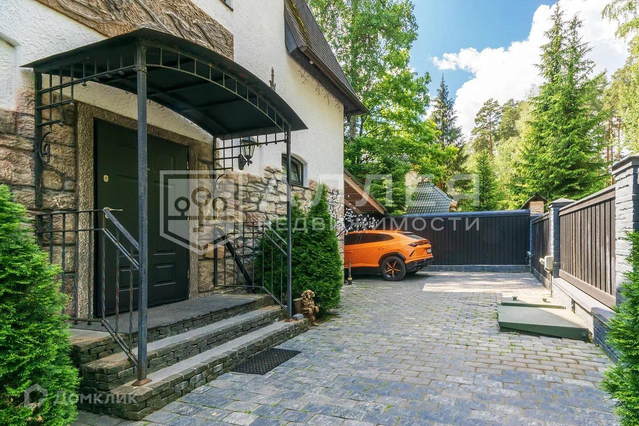 Дом: Дом под ключ  с мебелью,в стиле шале, с панорамными окнами.  Из окон открывается живописный вид на лесной участок. В зоне гостиной на первом этаже обустроен выход на просторную летнюю террасу. При строительстве использовались качественные и дорогие материалы ( лиственница, пробка и прочее). Интерьер дома выполнен в светлых теплых тонах. В доме имеется дровяной камин.