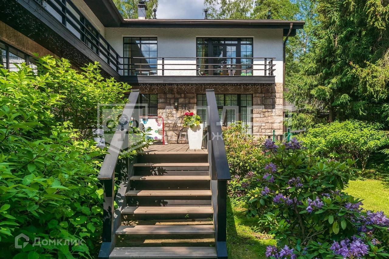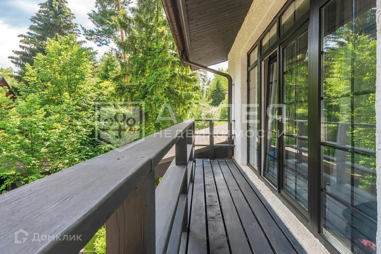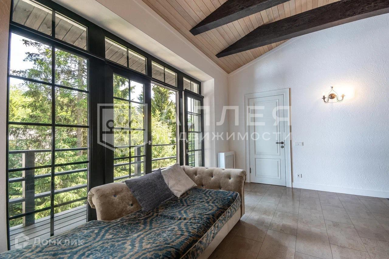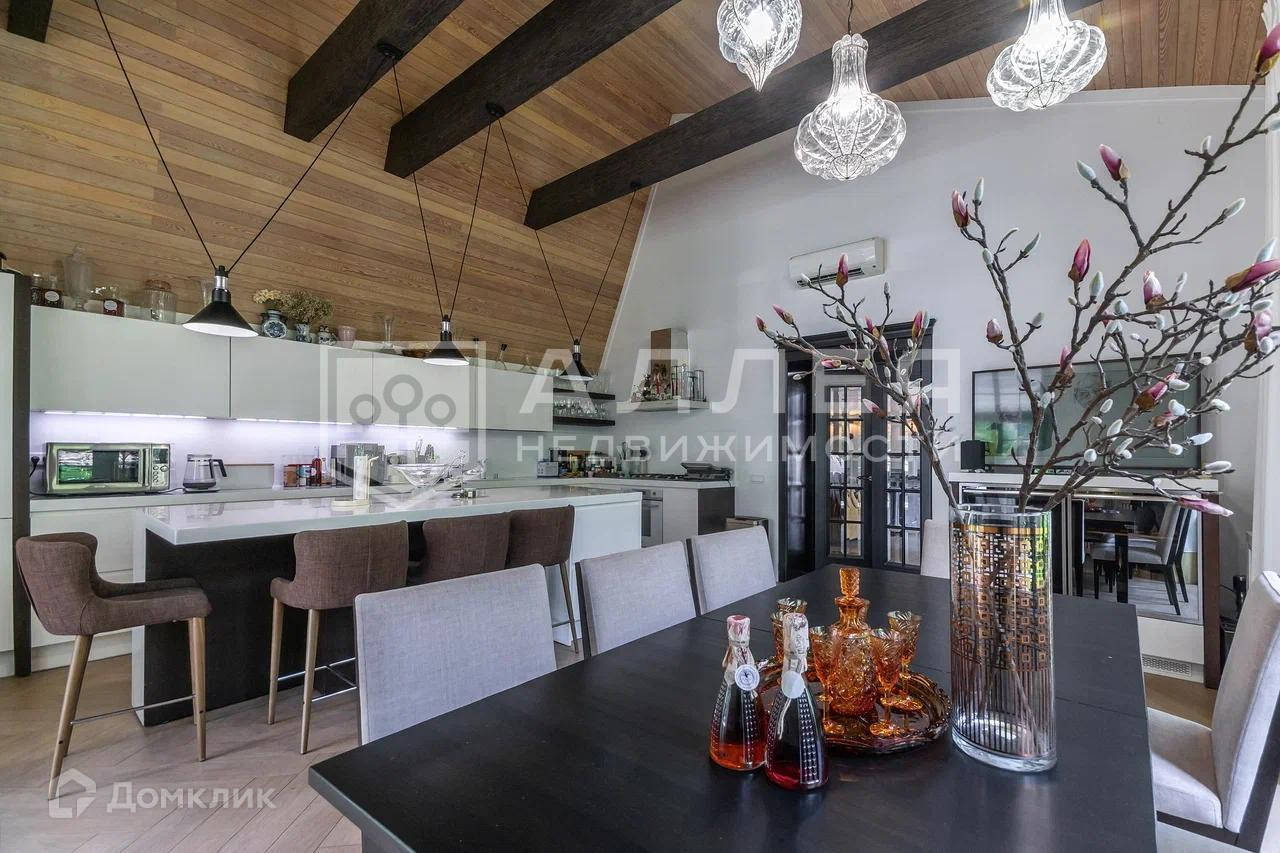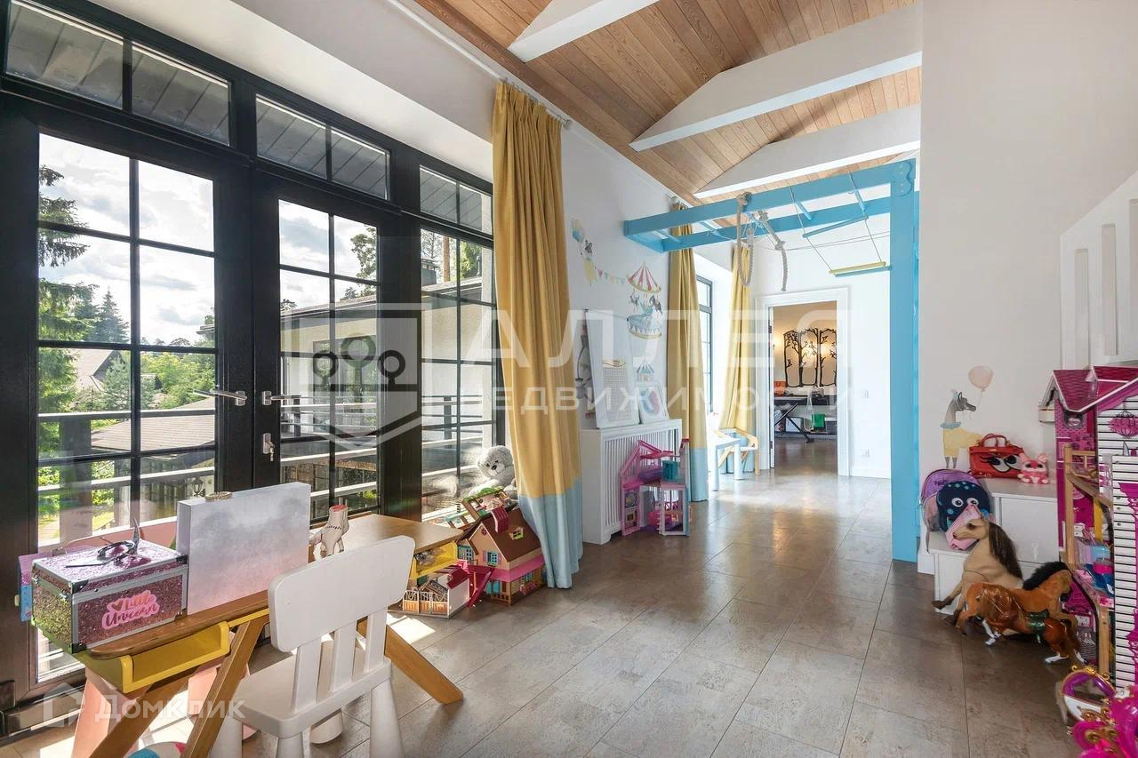 Дом: Дом под ключ  с мебелью,в стиле шале, с панорамными окнами.  Из окон открывается живописный вид на лесной участок. В зоне гостиной на первом этаже обустроен выход на просторную летнюю террасу. При строительстве использовались качественные и дорогие материалы ( лиственница, пробка и прочее). Интерьер дома выполнен в светлых теплых тонах. В доме имеется дровяной камин.