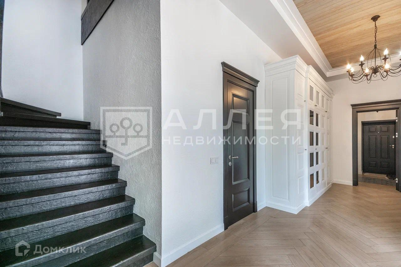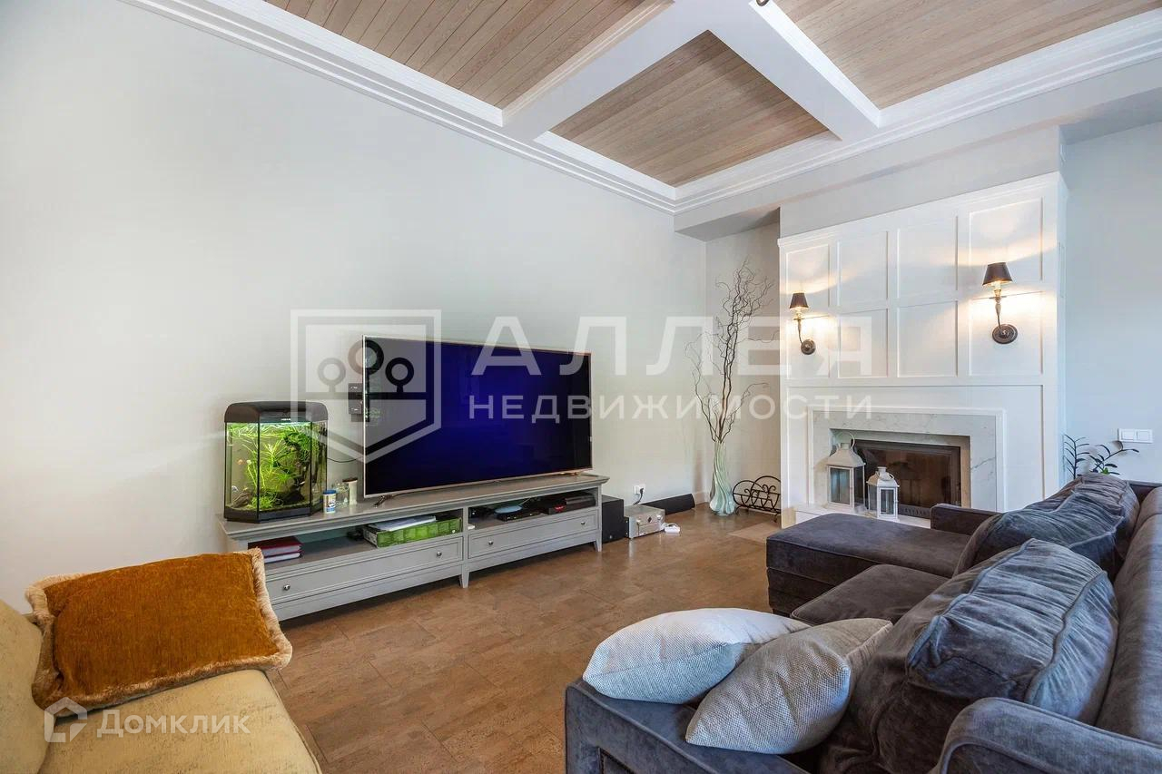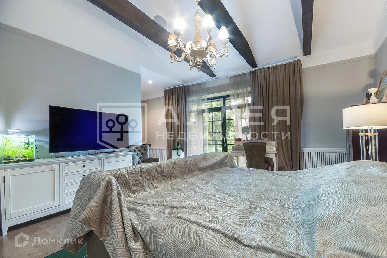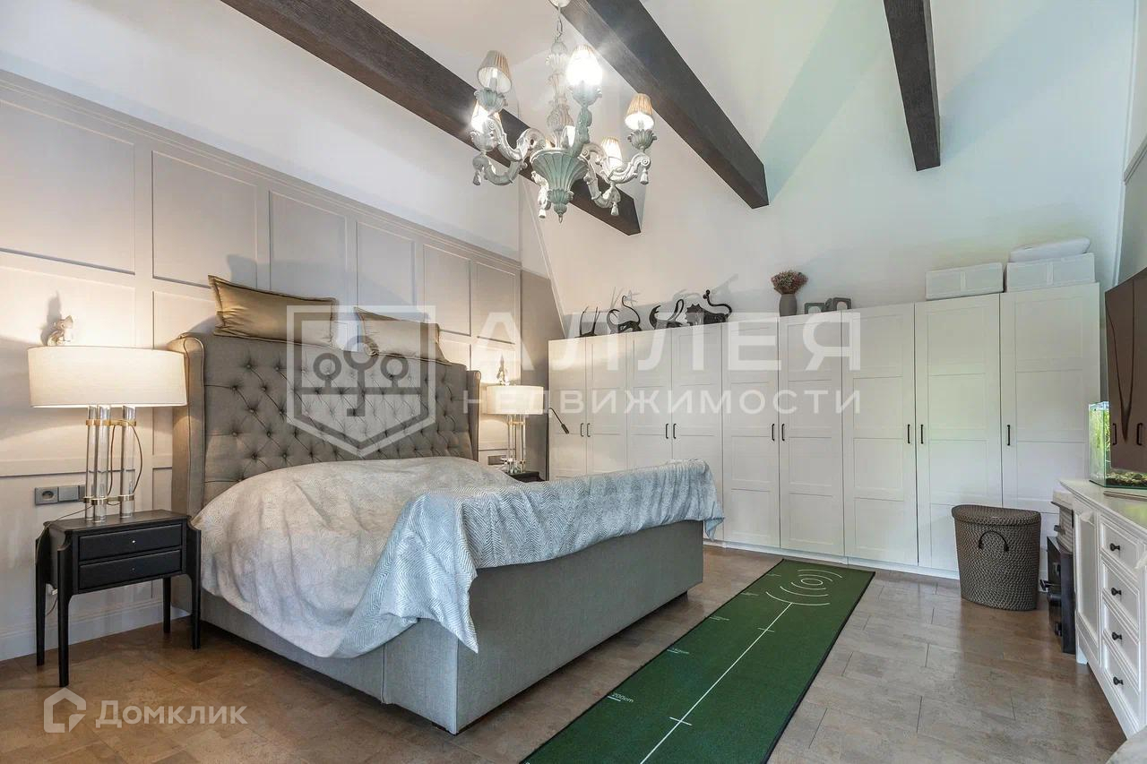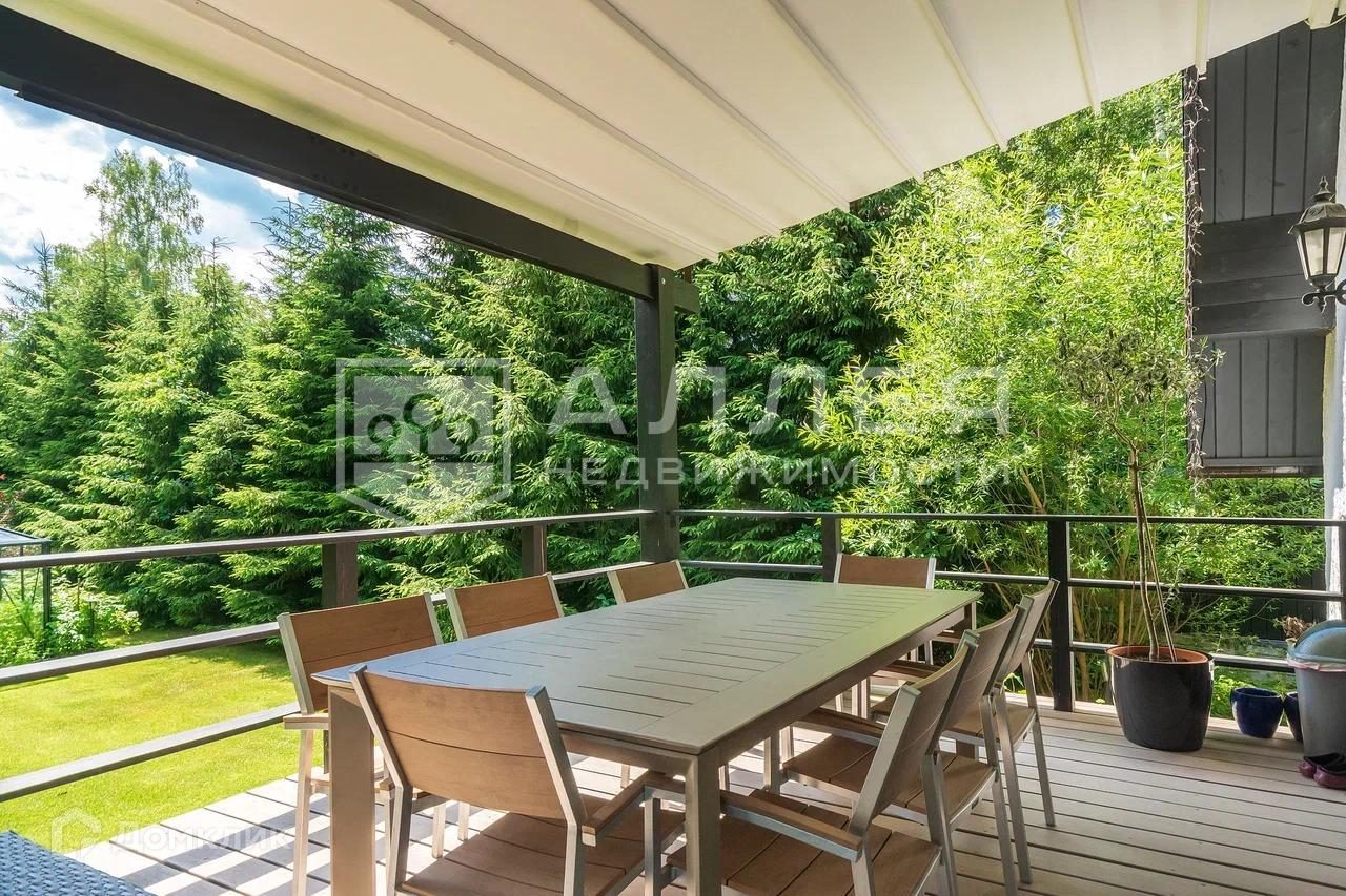 Дом: Дом под ключ  с мебелью,в стиле шале, с панорамными окнами.  Из окон открывается живописный вид на лесной участок. В зоне гостиной на первом этаже обустроен выход на просторную летнюю террасу. При строительстве использовались качественные и дорогие материалы ( лиственница, пробка и прочее). Интерьер дома выполнен в светлых теплых тонах. В доме имеется дровяной камин.