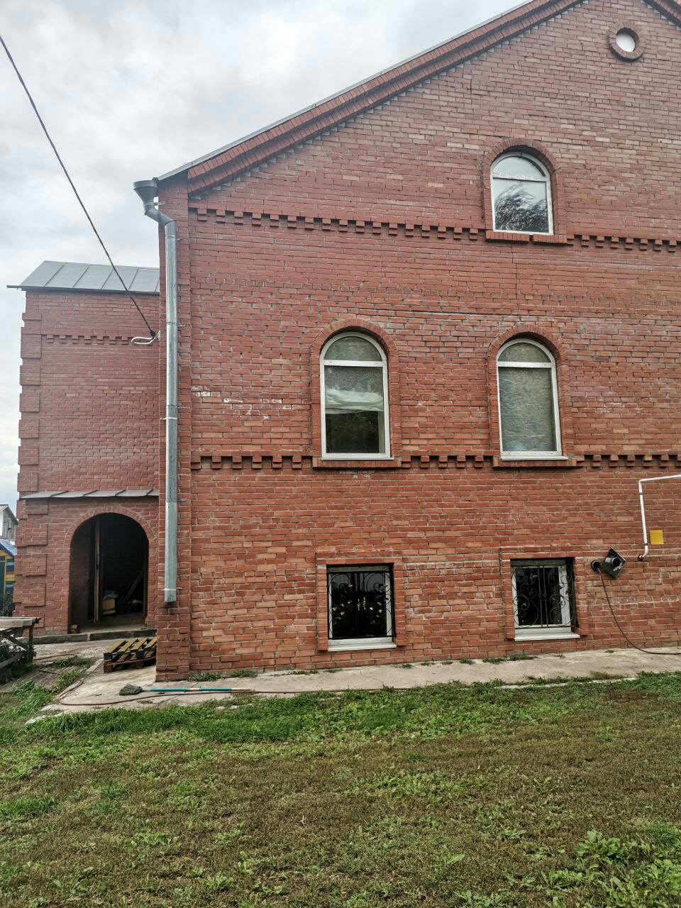 Кирпичный 3-х этажный дом в поселке иртышский. Электричество, газ, водопровод. На цокольном этаже просторный гараж, котельная комната, 4 подсобных помещения. Котельная комната выложена плиткой, 2 газовых котла подключены к коллектору из нержавейки заводского изготовления. Имеется отдельная пристроенная подъездная часть с выходом в цоколь, первый и второй этаж. Также имеется отдельный вход на первый этаж. На первом этаже спальня в гардеробом и с/у, 2 комнаты, большой общий с/у, гардероб, кухня студия с гостинной. Второй этаж, своодной планировки. На участке имеется забетонированная площадка для постройки беседки или бани.