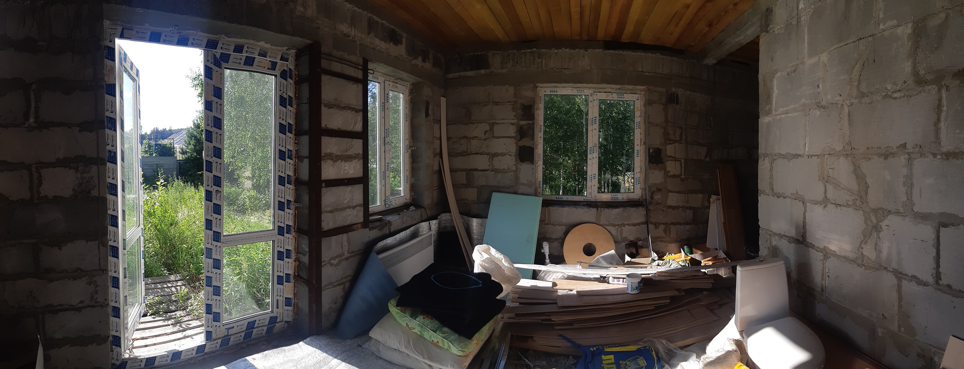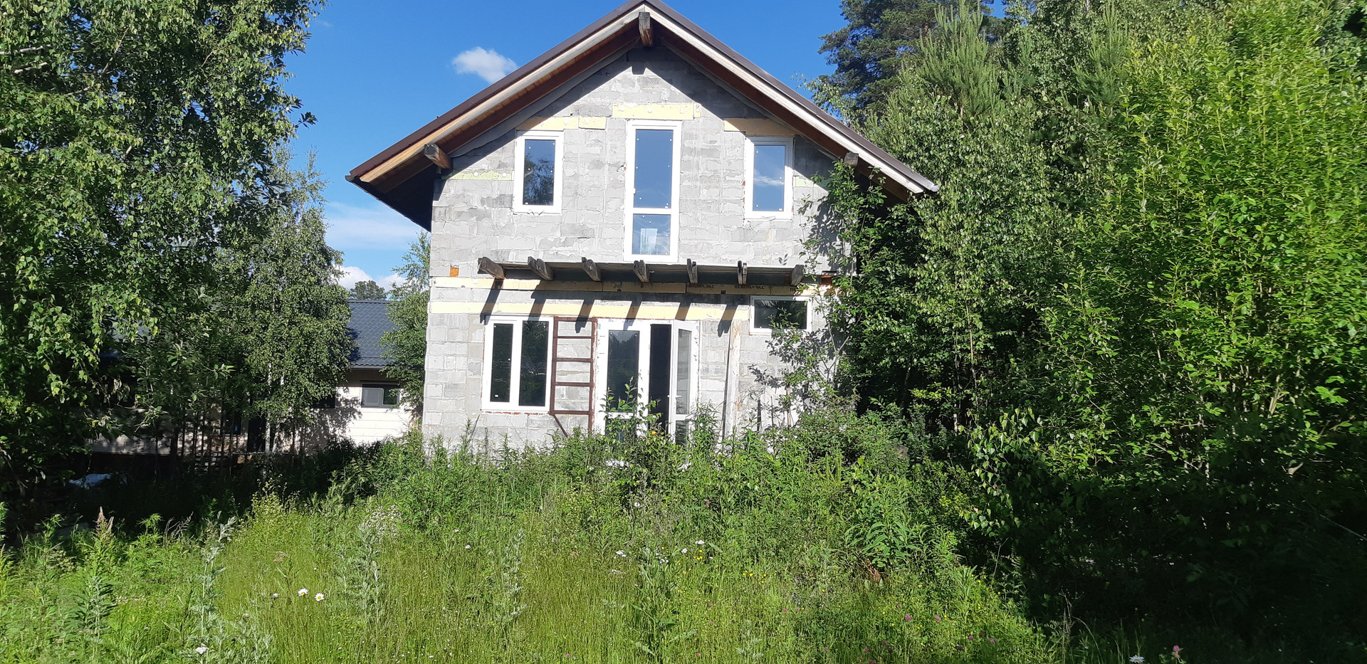 Давайте поговорим о доме. Дом строили качественно, с любовью, не торопясь, для себя. Фундамент ленточный ( бетон), материал стен - пеноблок, пол стяжка (бетон ),1 этаж; перекрытия- брус. 2 этаж полы - дерево. соответственно. По проекту на первом этаже запланировали просторную кухню-гостиную, сауну, веранду, с/узел. На втором этаже одну-две спальни, балкон. На данный момент в доме установлены качественные пластиковые окна и двери ( производитель "Веко"), крыша покрыта хорошей износостойкой металлочерепицей. Внутренней отделки в доме нет. Коммуникации нет.