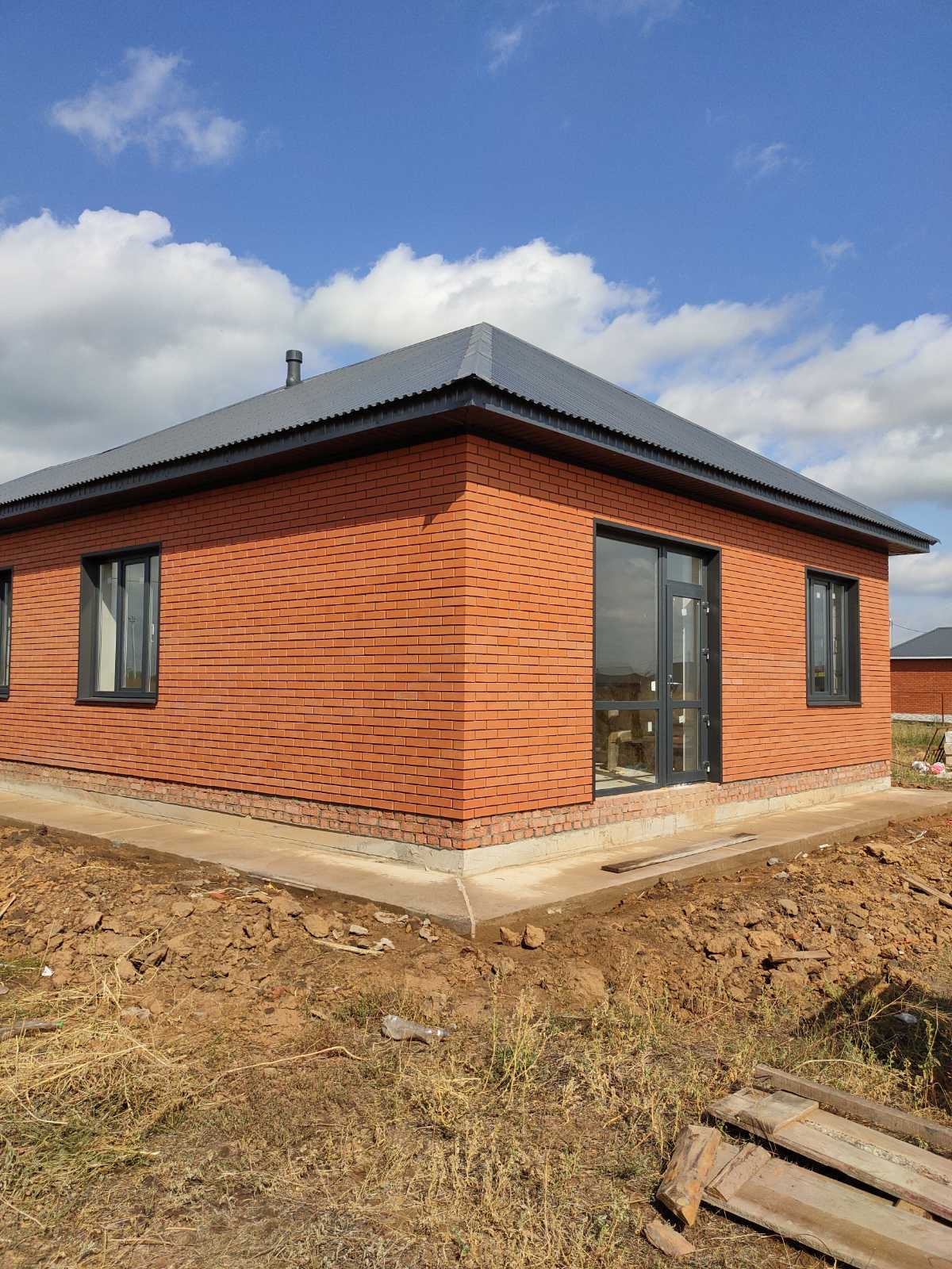 - дом из газоблока, обложен облицовочным красным  кирпичом;