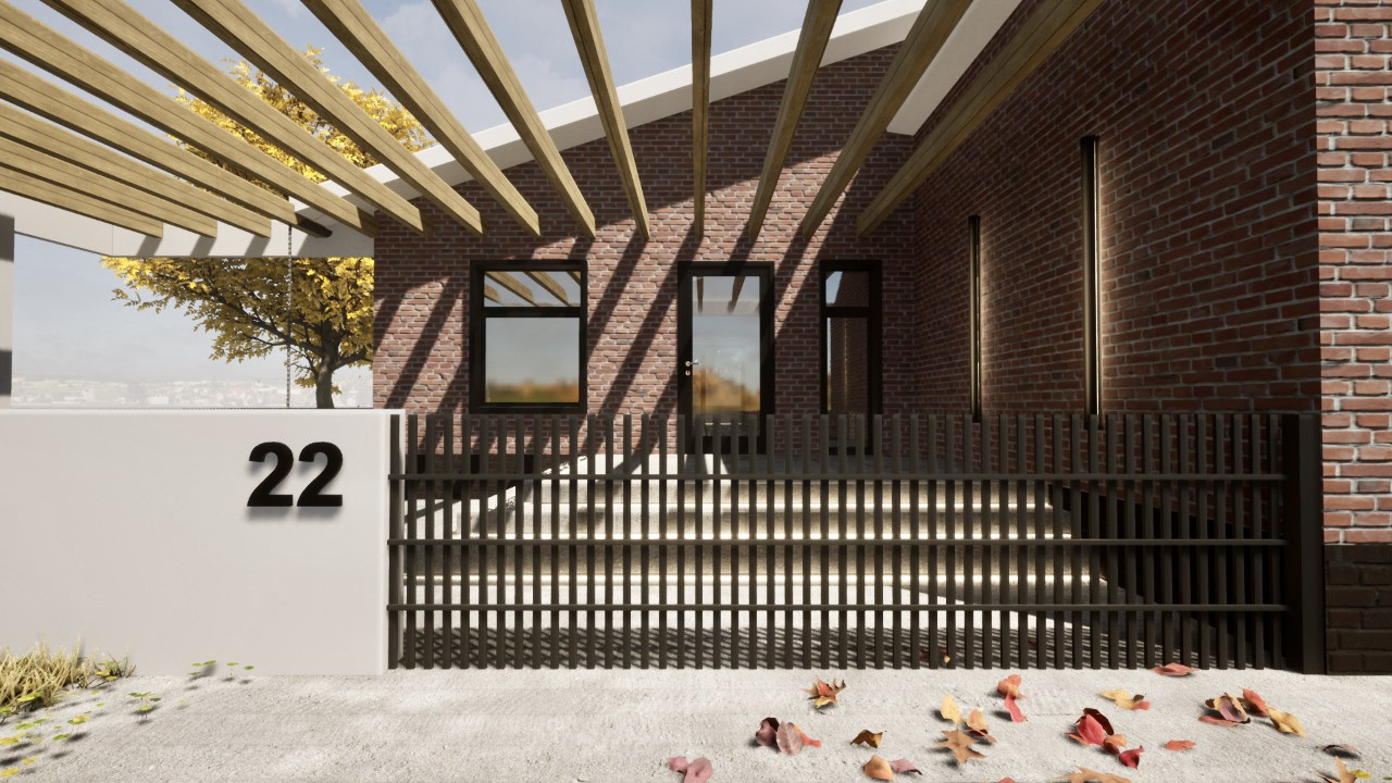 Все начинается с входной группы, которой мы уделили особое внимание, учли все до мельчайших деталей: пергола, комбинированные дорожки, деревья и газон у входа и  ступени с подсветкой доставят вас в просторную прихожую нашего дома.
