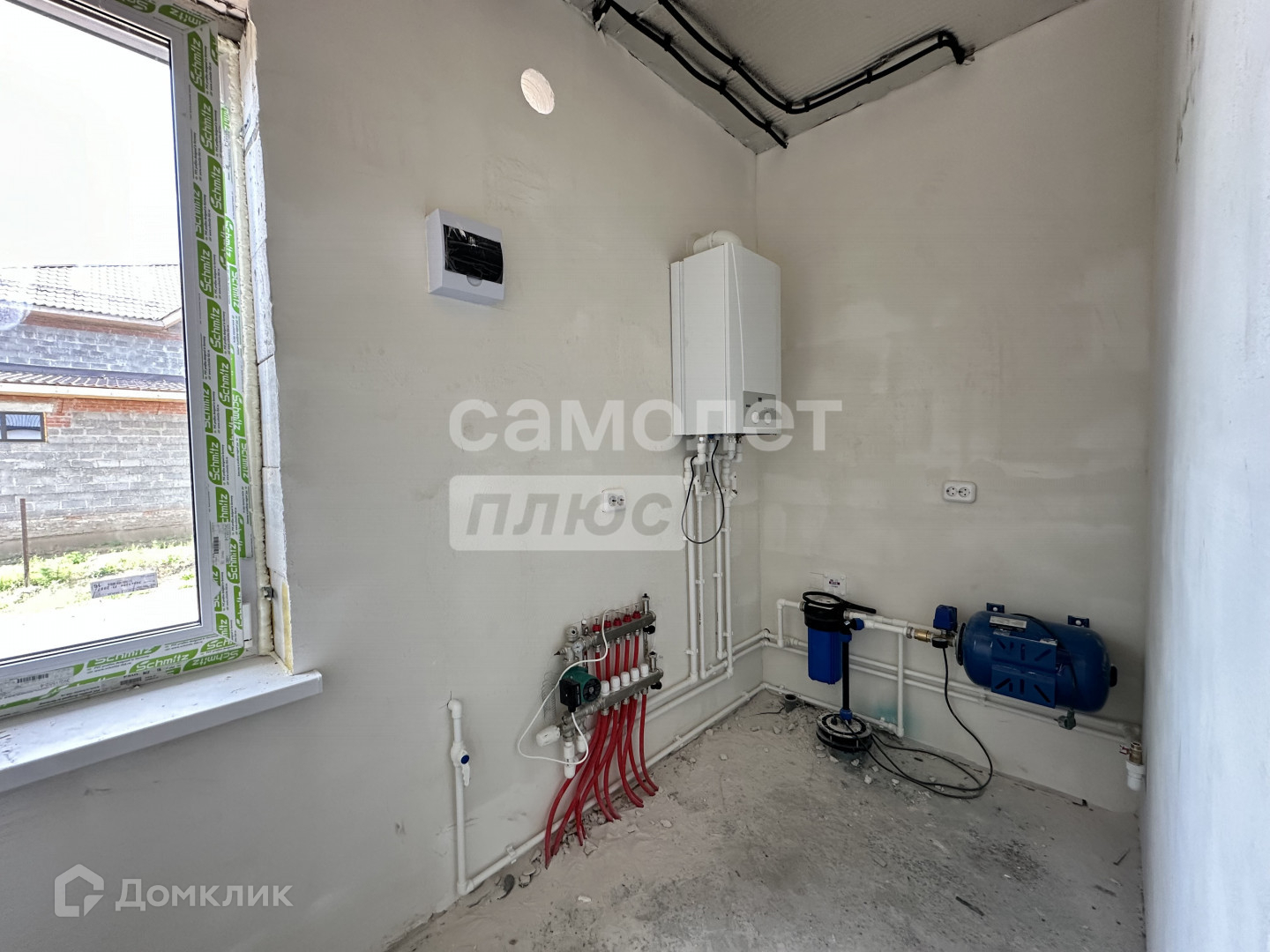 коммуникации заведены, газовый котёл, счётчики, тёплый пол по всему дому, выполнена разводка электрики и сантехнических труб. Канализация - индивидуальная. Вода - скважина.