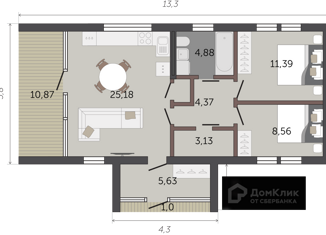 Общая площадь: 48 м2