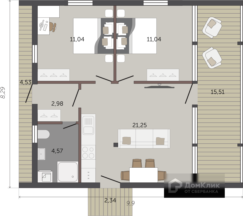 Общая площадь 73 м2