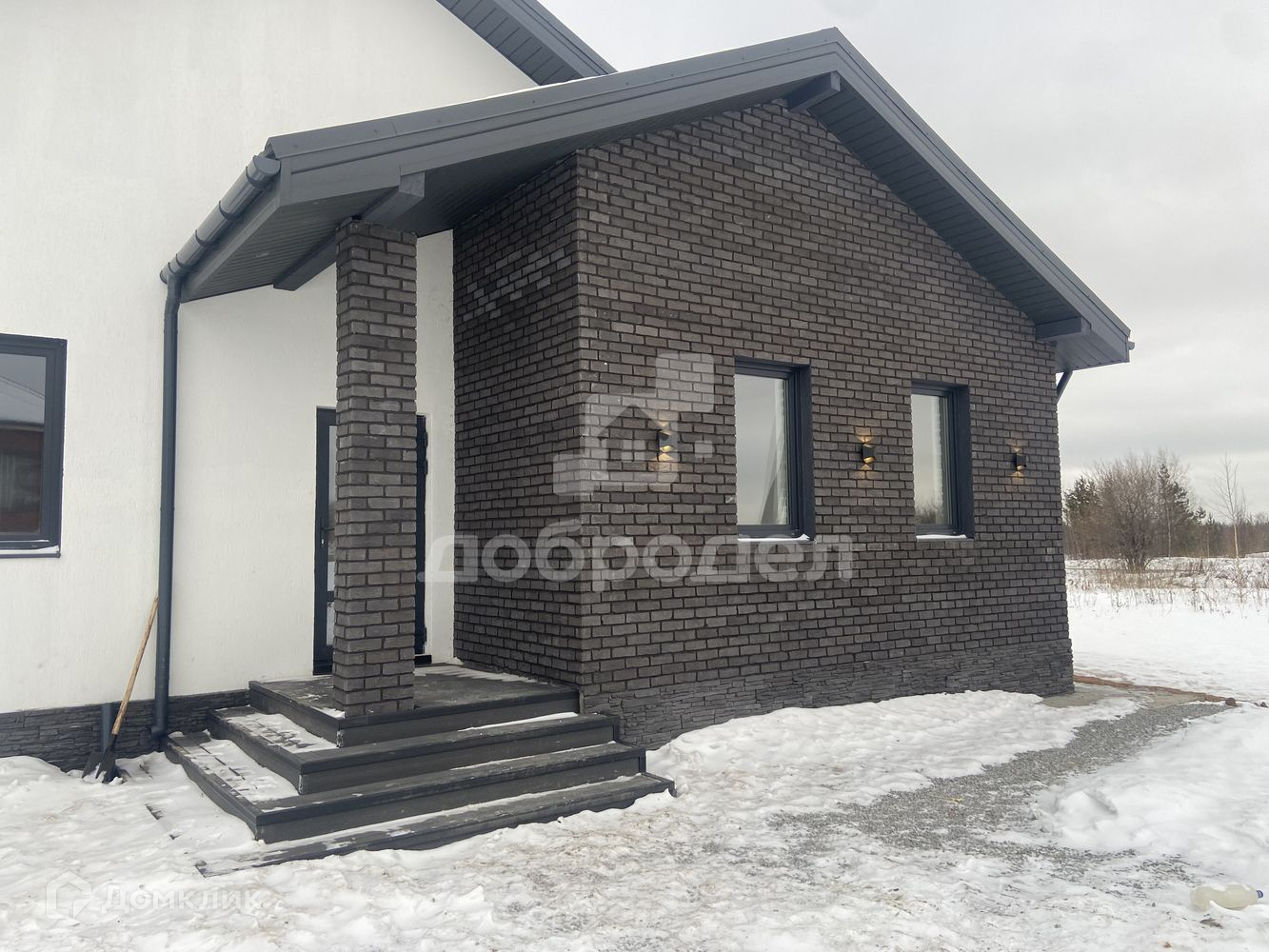 Входная группа и терасса отделана терасной доской.