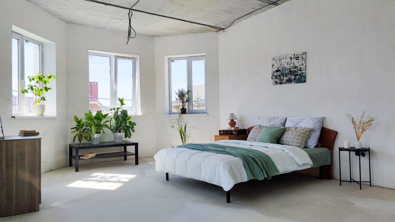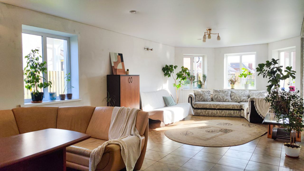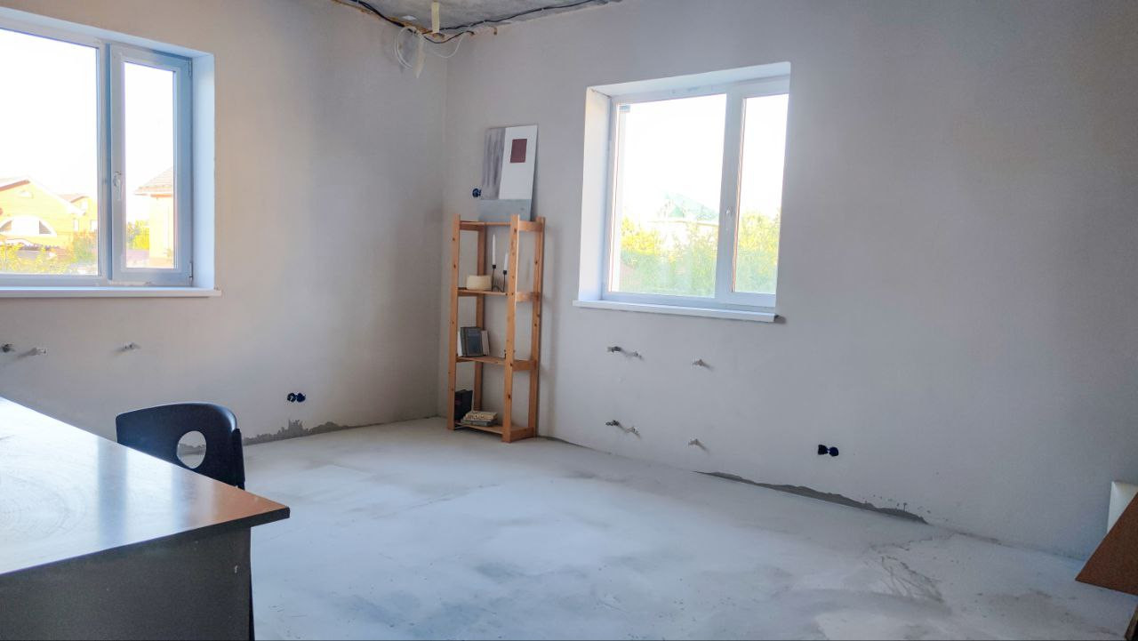 На втором этаже 3 комнаты, одна из которых имеет выход на террасу и санузел. Второй этаж под чистовую отделку: электрика разведена, пол залит ровнителем, можно уложить напольное покрытие, клеить обои на свой вкус и жить.