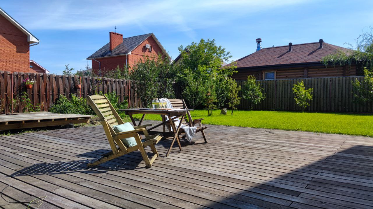 Терраса предполагалась как зимний сад, на нее выведено отопление, можно использовать как есть для летнего отдыха или можно застеклить и использовать как дополнительное помещение круглогодично