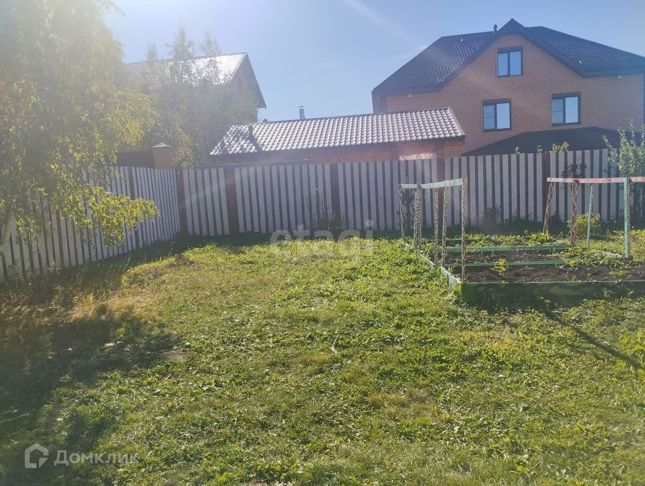 Участок огорожен деревянным забором, предусмотрены откатные ворота и парковочные места для авто.