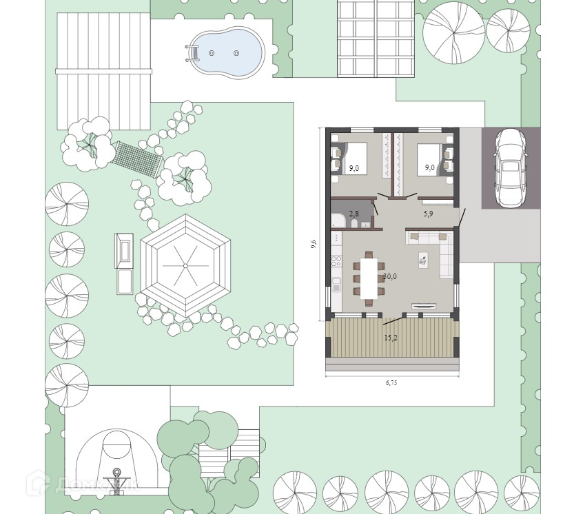 Площадь участка 9 сот.