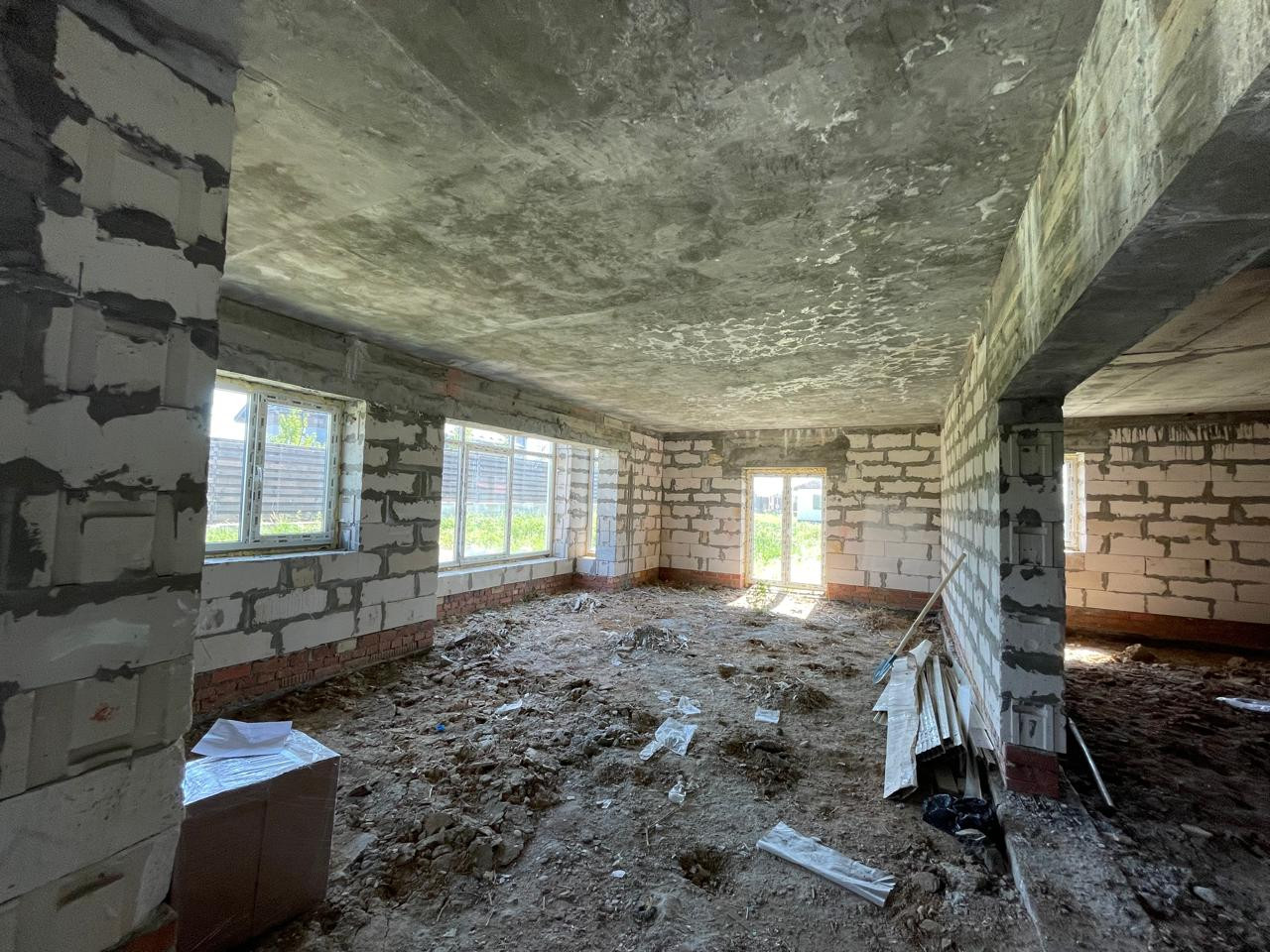 Готовая коробка двуxэтажного дома 180 кв.м,  свободной планиpoвки нa учaсткe 9 coток