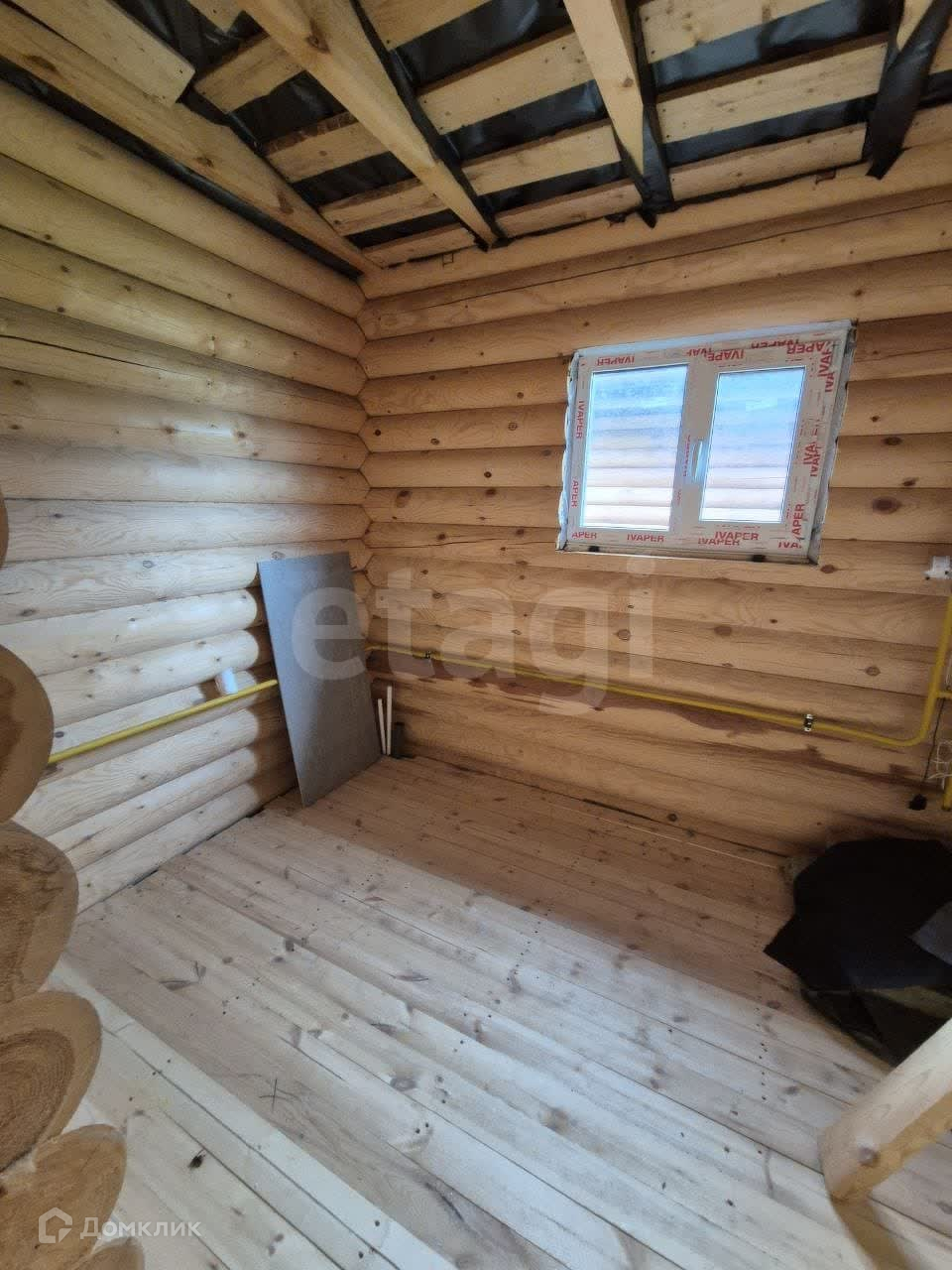 В продаже бревенчатый дом площадью 87,1 м2 с гаражом в пос. Юбилейный на участке 15,5 соток. Дом сделан из оцилиндрованного бревна диаметром 24 см и покрыт пропиткой тиккурила. Год постройки 2018. Крыша металлочерепица, сваи железо-бетонные, окна установлены. Дом новый никто не жил. Газ заведен в дом, стоит счётчик. Разводка отопления сделана по всему дому. Электричество также заведено в дом. Централизованный водопровод проведен до дома, остается только подключить. Также на участке есть колодец. Есть станция биологической очистки, рассчитанная на 5 человек, её нужно установить.