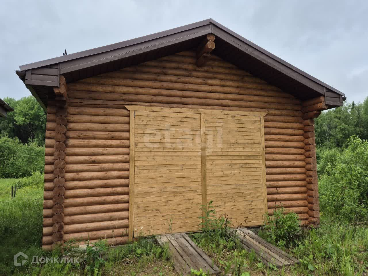 Гараж также сделан из оцилиндрованного бревна диаметром 18 см , размеры 7,5*5,5 м( 42 м2). В гараже оборудована смотровая яма.