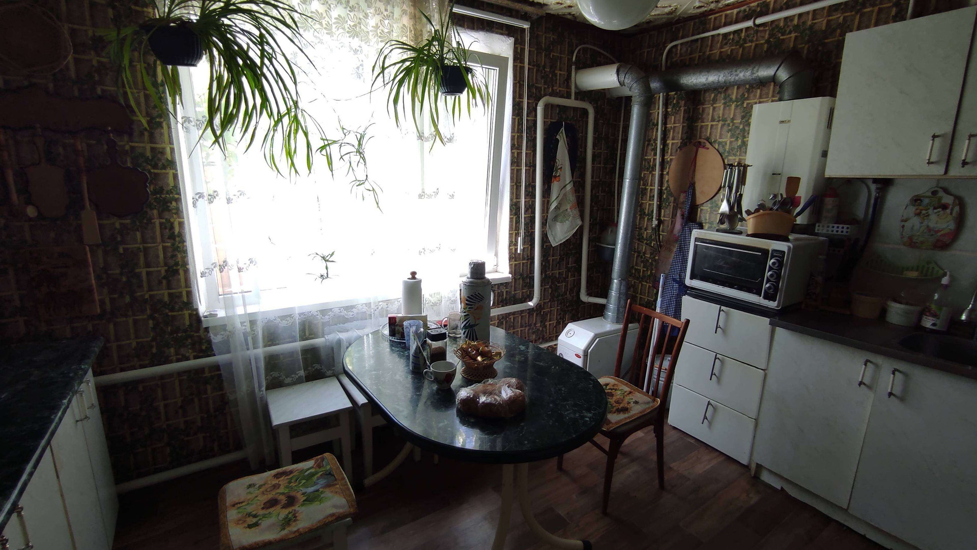 Две большие комнаты изолированы, две комнаты проходные , большая кухня, раздельный санузел, прихожая, коридор со встроенным гардеробом.  Отопление автономное, коммунальные платежи небольшие.
