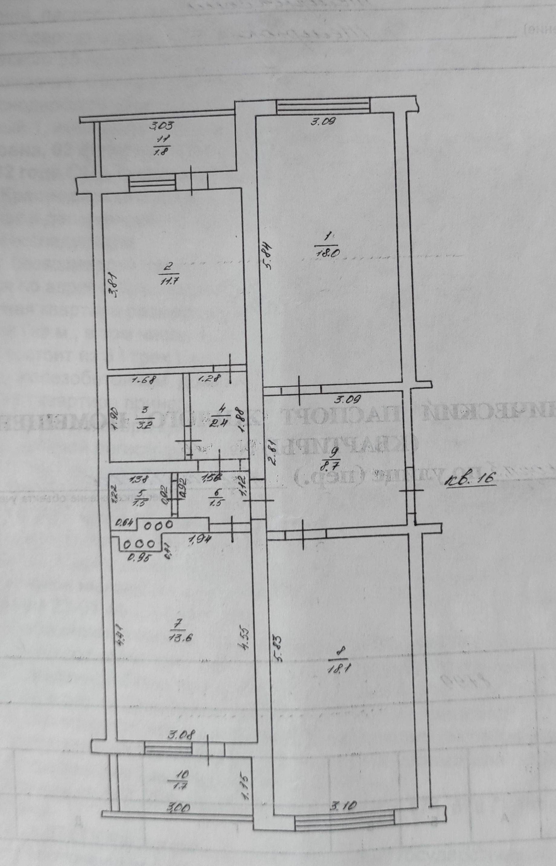 Жилая площадь 53.2 м2