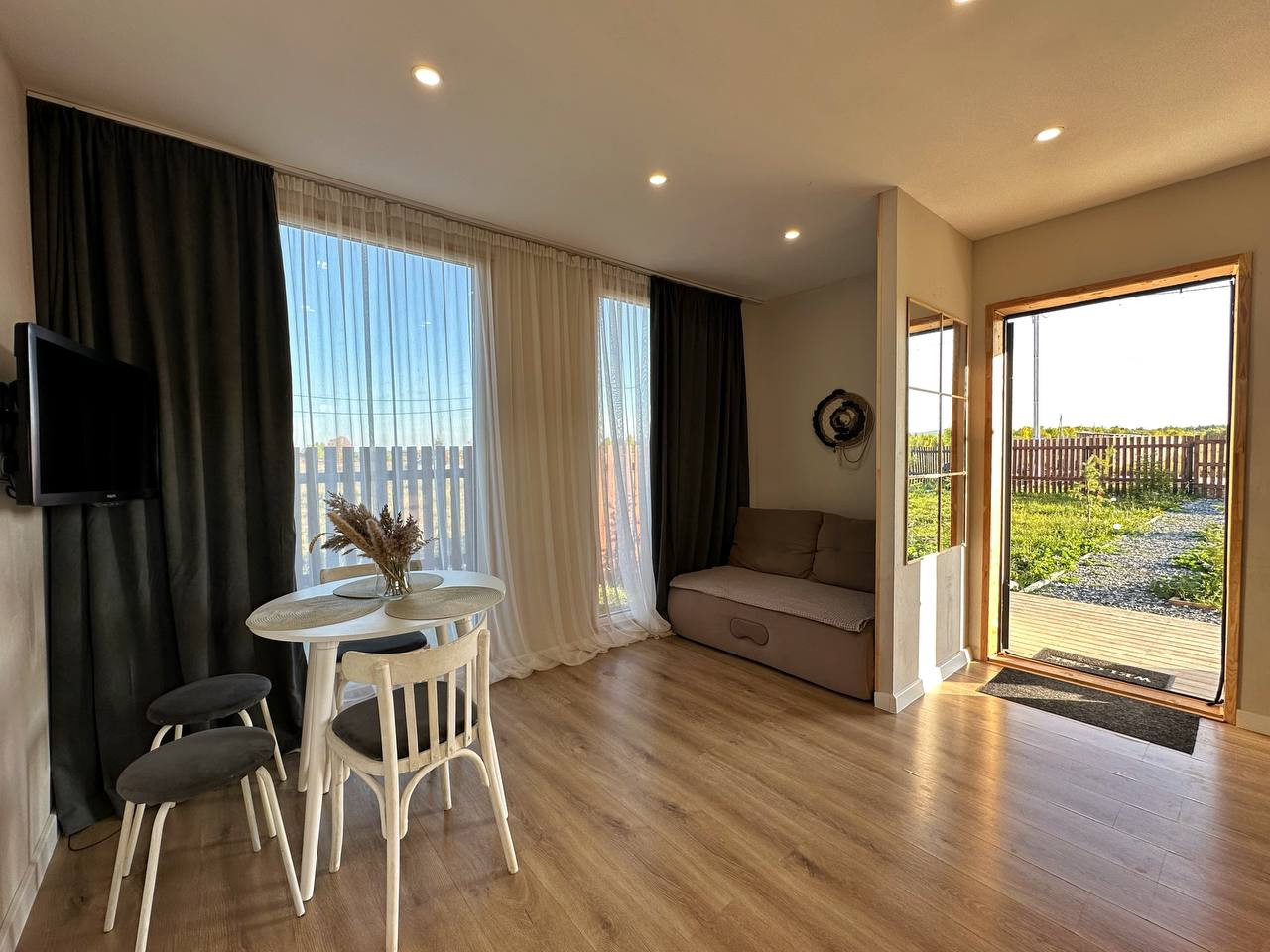 Новый каркасный дом с дизайнерским ремонтом. В стоимость входит мебель, техника, камеры видеонаблюдения, новое качественное постельное белье, кухонная утварь и прочее.