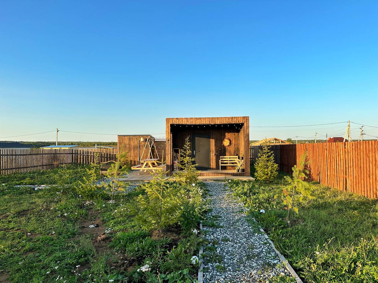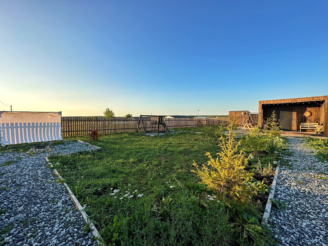 Участок 6 соток. Назначение земель - ИЖС. На участке сауна, мангальная зона, летний кинотеатр, костровая зона, детская, площадка, батут.