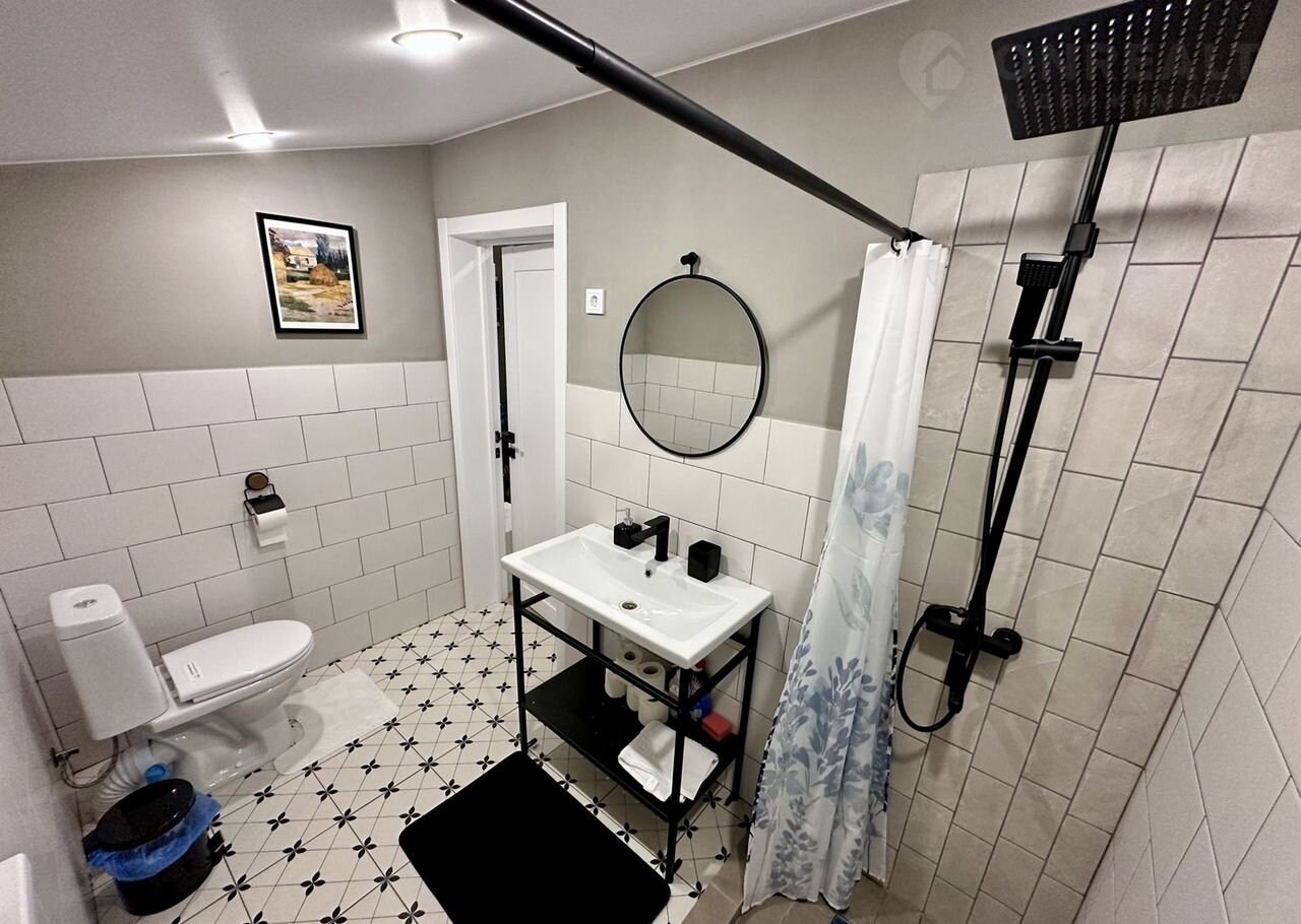 - оборудованная ванная комната: душевая зона, туалет, раковина с зеркалом.