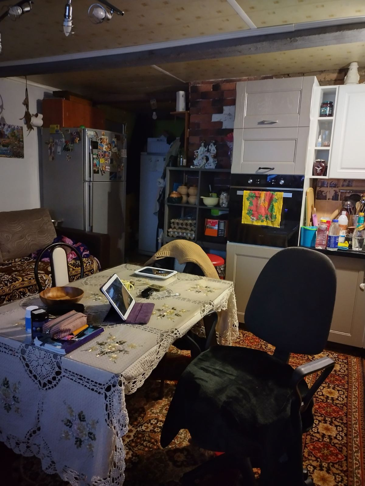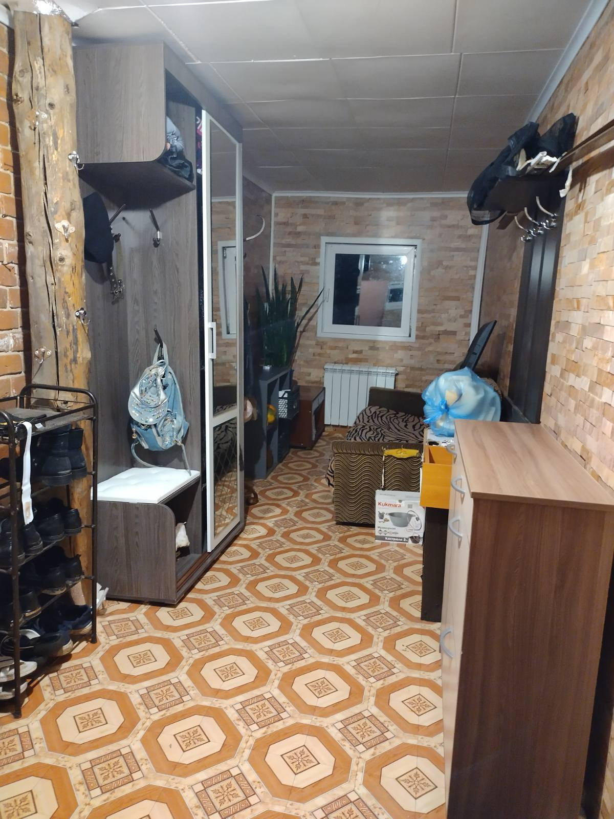 дом из кирпича+ пристрой из твинблока, крыша металлопрофиль , участков 2x15, один с домом, другой с адресом рядом. В доме 3 большие комнаты, кухня гостиная, котельная, совмещенный санузел, 2 входа(один через кочегарку, другой парадный). Вода из скважины, канализация автономная, отопление твердотопливный котел. Хорошие подъездные  пути. Рядом лесной массив и небольшая речка. До Камы 5 мин на авто. Есть хозпостройки для животных, вольеры для собак.