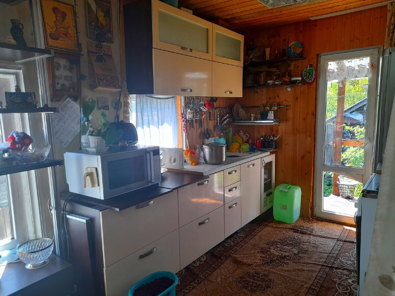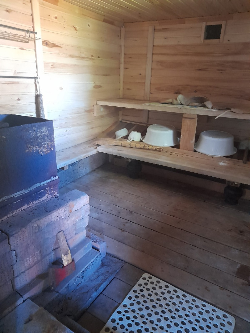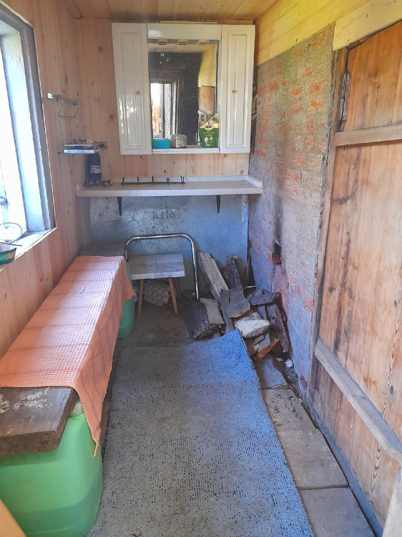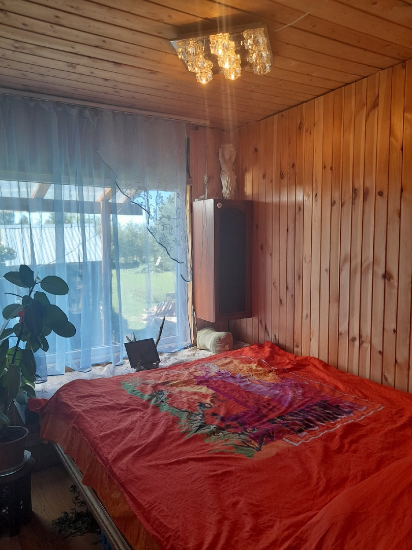 Бревенчатый жилой 1- этажный дом, общей площадью 38 м.кв., прихожая, спальня, гостиная - объединена с кухней (с кухни имеется выход в огород). Отопление электро, центральная канализация, крытый двор, беседка и баня. Земельный участок 12 соток с насаждениями и газоном. Круглогодичный подъезд, адрес, прописка, документы готовы.